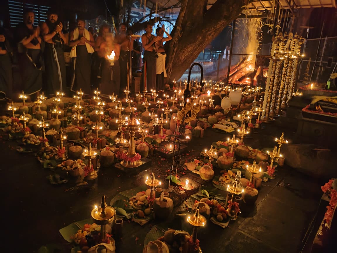 ഏഴര വെളുപ്പിനെ മല ഉണര്ത്തല്, കാവ് ഉണര്ത്തല്, കാവ് ആചാരത്തോടെ താംബൂല സമര്പ്പണം, മലയ്ക്ക് കരിക്ക് പടേനി , തൃപ്പടി പൂജ ,ഭൂമി പൂജ ,വൃക്ഷ സംരക്ഷണ പൂജ ,ജല സംരക്ഷണ പൂജ , വാനര പൂജ ,വാനര ഊട്ട് ,മീനൂട്ട് ,പ്രഭാത പൂജ ,നിത്യ അന്നദാനം ഊട്ട് പൂജ , സന്ധ്യാ നമസ്കാരം ,ദീപ നമസ്കാരം ,ദീപക്കാഴ്ച , കളരിപൂജ ,ആഴി സമര്പ്പണം, ആഴി പൂജ ,വെള്ളം കുടി നിവേദ്യം , ഭാരതാംബയുടെ മടിത്തട്ടില് ആദ്യം രൂപം കൊണ്ട കലാരൂപം ഭാരതക്കളി,കാവ് ആചാര അനുഷ്ഠാനത്തോടെ ചരിത്ര പുരാതനമായ കുംഭ പാട്ട് എന്നിവ രാത്രി യാമങ്ങളില് സമര്പ്പിച്ചു . കുംഭം(മുള ) ഇടിച്ച് വെള്ളം കുടി നിവേദ്യവും ഭാരതക്കളിയും നടന്നു .പൂജകള്ക്ക് മുഖ്യ ഊരാളി ഭാസ്കരന് നേതൃത്വം നല്കി