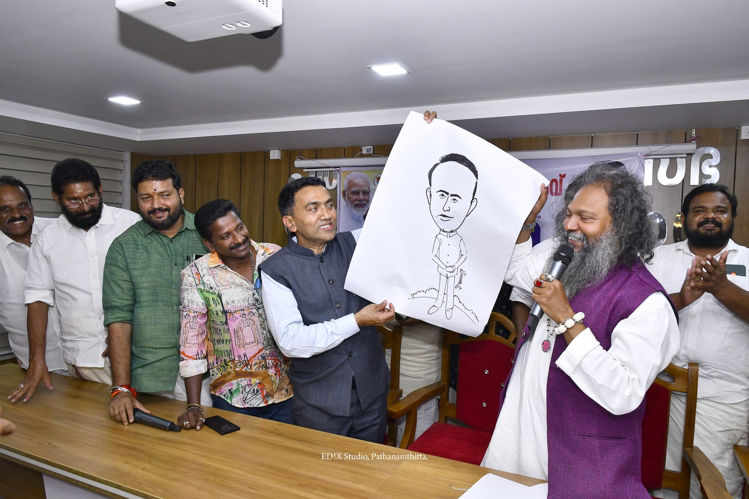 konnivartha.com/ പത്തനംതിട്ട : കേരളത്തിന്റെ വികസനസാദ്ധ്യതകൾ ചർച്ച ചെയ്യാൻ ഗോവ മുഖ്യമന്ത്രി ഡോ : പ്രമോദ് സാവന്ത് നയിച്ച ‘ഇന്റലച്ചൽസ് കോൺക്ളേവിൽ ‘ സെലിബ്രിറ്റി ഗസ്റ്റായി എത്തിയ ജിതേഷ്ജി സംസ്ഥാനത്തിന്റെ വികസനനിർദ്ദേശങ്ങൾക്കൊപ്പം ഗോവ മുഖ്യമന്ത്രിയുടെ തത്സമയ അതിവേഗം രേഖചിത്രവും വരച്ചുനൽകി ഗോവ മുഖ്യന്റെ മനം കവർന്നു.