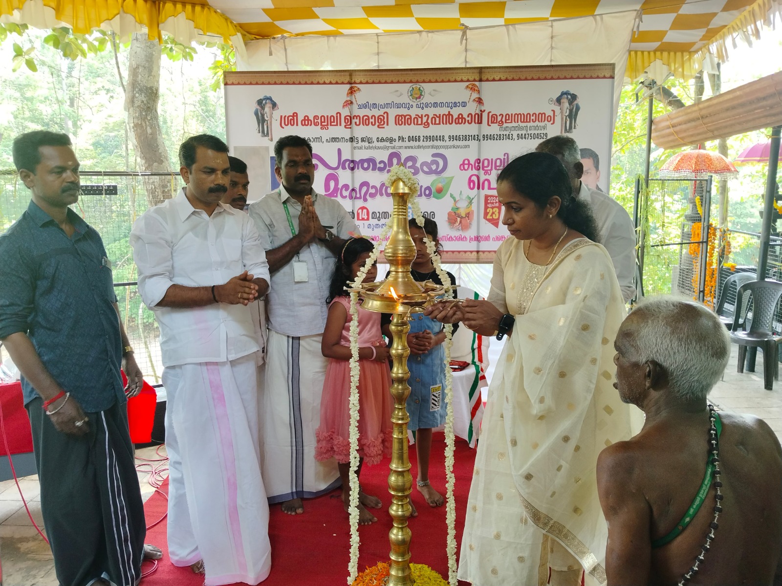 പത്തനംതിട്ട കോന്നി ശ്രീ കല്ലേലി ഊരാളി അപ്പൂപ്പന്‍ കാവിലെ പത്താമുദയ മഹോത്സവത്തിന്‍റെ ഭാഗമായി മൂന്നാം ഉത്സവം പ്രമുഖ ജീവകാരുണ്യ പ്രവർത്തക രേഖ സ്നേഹപ്പച്ച, കെ, പി, എം, എസ് കോന്നി താലൂക്ക് യൂണിയൻ പ്രസിഡന്റ് അനിൽകുമാർ എന്നിവർ ഭദ്രദീപം തെളിയിച്ചു ഉദ്ഘാടനം ചെയ്തു. കാവ് പ്രസിഡന്റ് അഡ്വ: സി വി ശാന്തകുമാര്‍ ,സെക്രട്ടറി സലിം കുമാര്‍ , സാബു കുറുമ്പകര എന്നിവര്‍ സംസാരിച്ചു . നാലാം ഉത്സവ ദിനമായ നാളെ രാവിലെ പത്തു മണിയ്ക്ക് നാഗ പൂജ ആയില്യം പൂജ വിശേഷാല്‍ വഴിപാടായി സമര്‍പ്പിക്കും . നാലാം ഉത്സവം പ്രമാടം ഗ്രാമപഞ്ചായത്ത് പ്രസിഡന്റ് എന്‍ .നവനിത് ഉദ്ഘാടനം ചെയ്യും .
