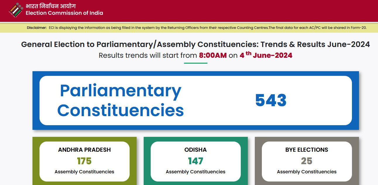 ഇലക്ഷൻ കമ്മീഷന്റെ എൻകോർ സോഫ്റ്റ് വെയറിൽ നിന്ന് തിരഞ്ഞെടുപ്പ് ഫലം https://results.eci.gov.in എന്ന വെബ്സൈറ്റ് വഴിയാണ് തത്സമയം ലഭ്യമാവുക. ഓരോ റൗണ്ട് വോട്ടെണ്ണൽ കഴിയുമ്പോഴും വോട്ടെണ്ണൽ കേന്ദ്രങ്ങളിൽ നിന്ന് നേരിട്ട് എആർഒമാർ തത്സമയം ലഭ്യമാക്കുന്ന ഫലമാണ് വെബ്സൈറ്റിൽ അതത് സമയം ലഭിക്കുക. ആദ്യമായാണ് ലോക്സഭ തിരഞ്ഞെടുപ്പിൽ ഇത്തരത്തിൽ രാജ്യത്തെ എല്ലാ മണ്ഡലങ്ങളിൽ നിന്നുള്ള ഫലങ്ങൾ ഏകീകൃത സംവിധാനം വഴി ലഭ്യമാക്കുന്നത്.