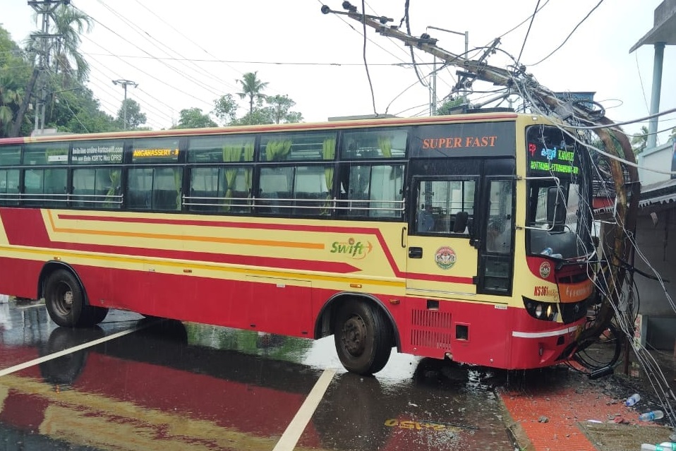 konnivartha.com: കോന്നി മുറിഞ്ഞകല്ലില്‍ കെ എസ് ആർ ടി സി കണ്ണൂർ സൂപ്പർ ഫാസ്റ്റ് ബസ് അപകടത്തില്‍പ്പെട്ടു.ആർക്കും പരിക്കില്ല . കനത്ത മഴ സമയത്ത് വന്ന ബസ്സ്‌ ആണ് നിയന്ത്രണം വിട്ടു സമീപത്തെ പോസ്റ്റില്‍ ഇടിച്ചു നിന്നത് . ഏറെ നേരം ഗതാഗത തടസം ഉണ്ടായി .ബസ്സിലെ യാത്രികര്‍ സുരക്ഷിതര്‍ ആണ് .