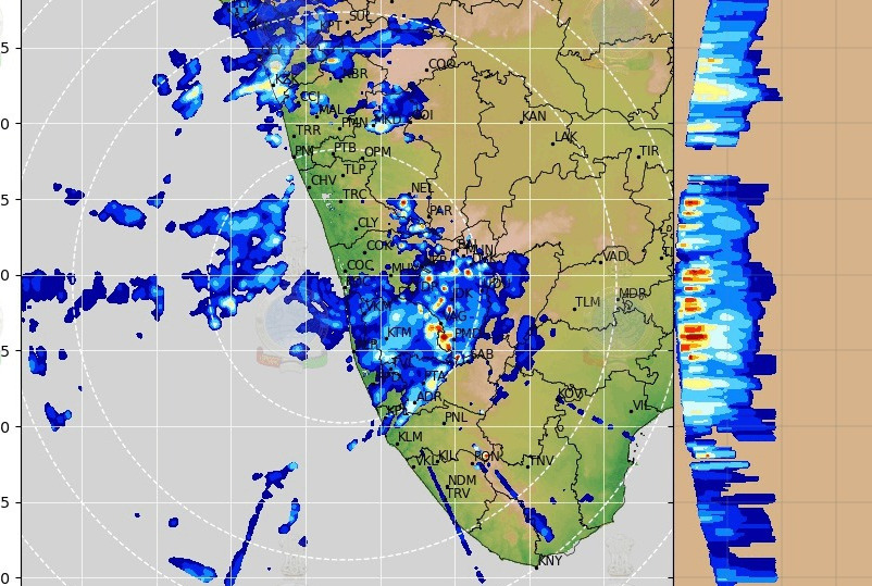 Heavy rainfall & gusty wind speeds reaching 40 Kmph to 50 Kmph is likely at one or two places in Kottayam, Idukki, & Ernakulami districts; Moderate rainfall & gusty wind speeds reaching 40 Kmph is likely at one or two places in other districts of Kerala.