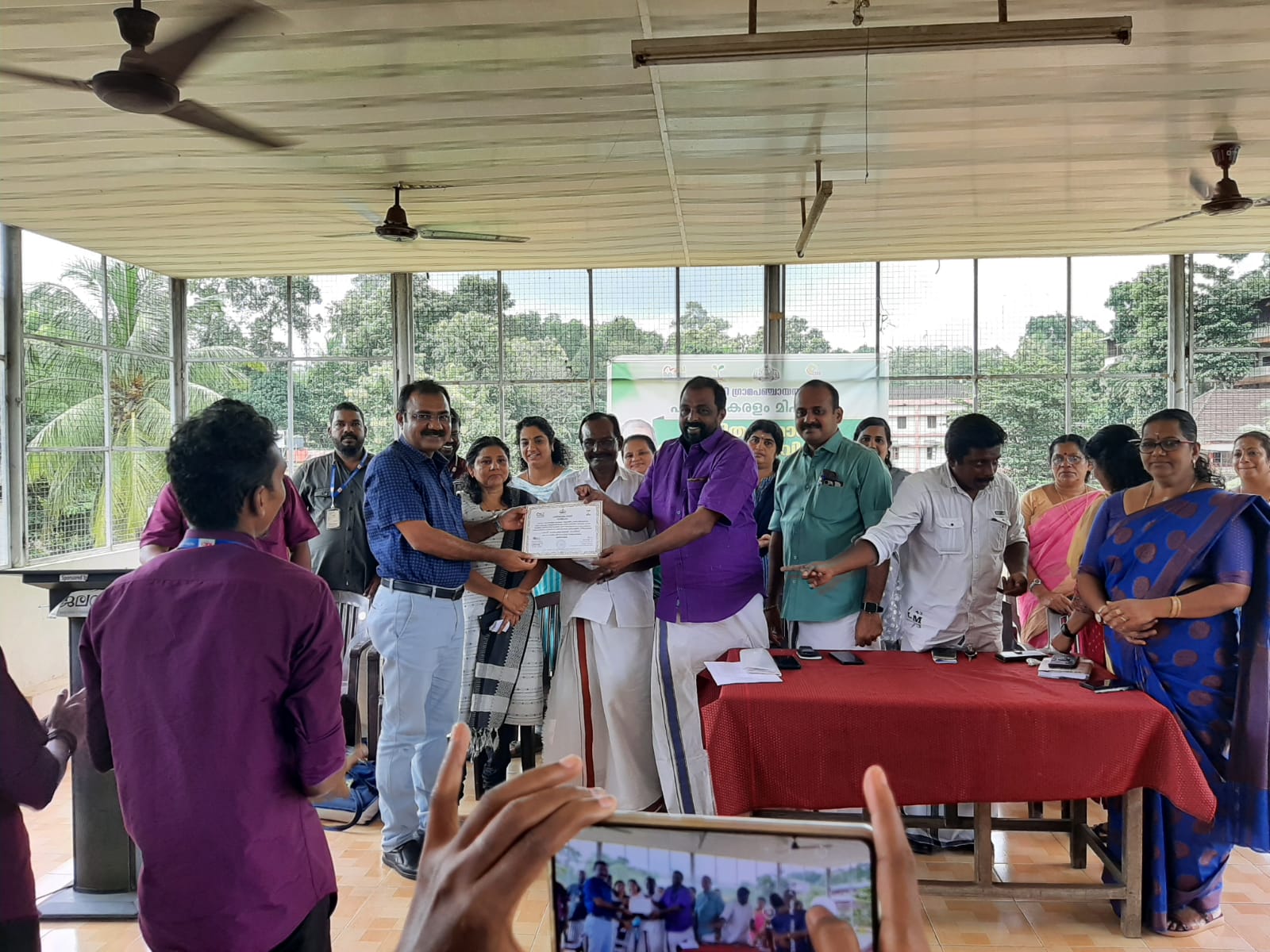 റാന്നി ഗ്രാമപഞ്ചായത്ത് ഹാളില് നടന്ന ചടങ്ങില് ഹരിത കേരളം ജില്ലാ കോഡിനേറ്റര് ജി അനില്കുമാര് സര്ട്ടിഫിക്കറ്റ് പഞ്ചായത്ത് പ്രസിഡന്റ് കെ ആര് പ്രകാശിന് കൈമാറി. ഗ്രാമപഞ്ചായത്ത് വൈസ് പ്രസിഡന്റ് ശോഭാ ചാര്ലി, സ്റ്റാന്ഡിംഗ് കമ്മറ്റി അംഗങ്ങള്, വാര്ഡ് മെമ്പര്മാര്, പഞ്ചായത്ത് സെക്രട്ടറി ജി. സുധാകുമാരി , അസിസ്റ്റന്റ് സെക്രട്ടറി കെ.എസ്. സതീശന്. വിഇഒ ചിഞ്ചു എന്നിവര് ചടങ്ങില് പങ്കെടുത്തു.