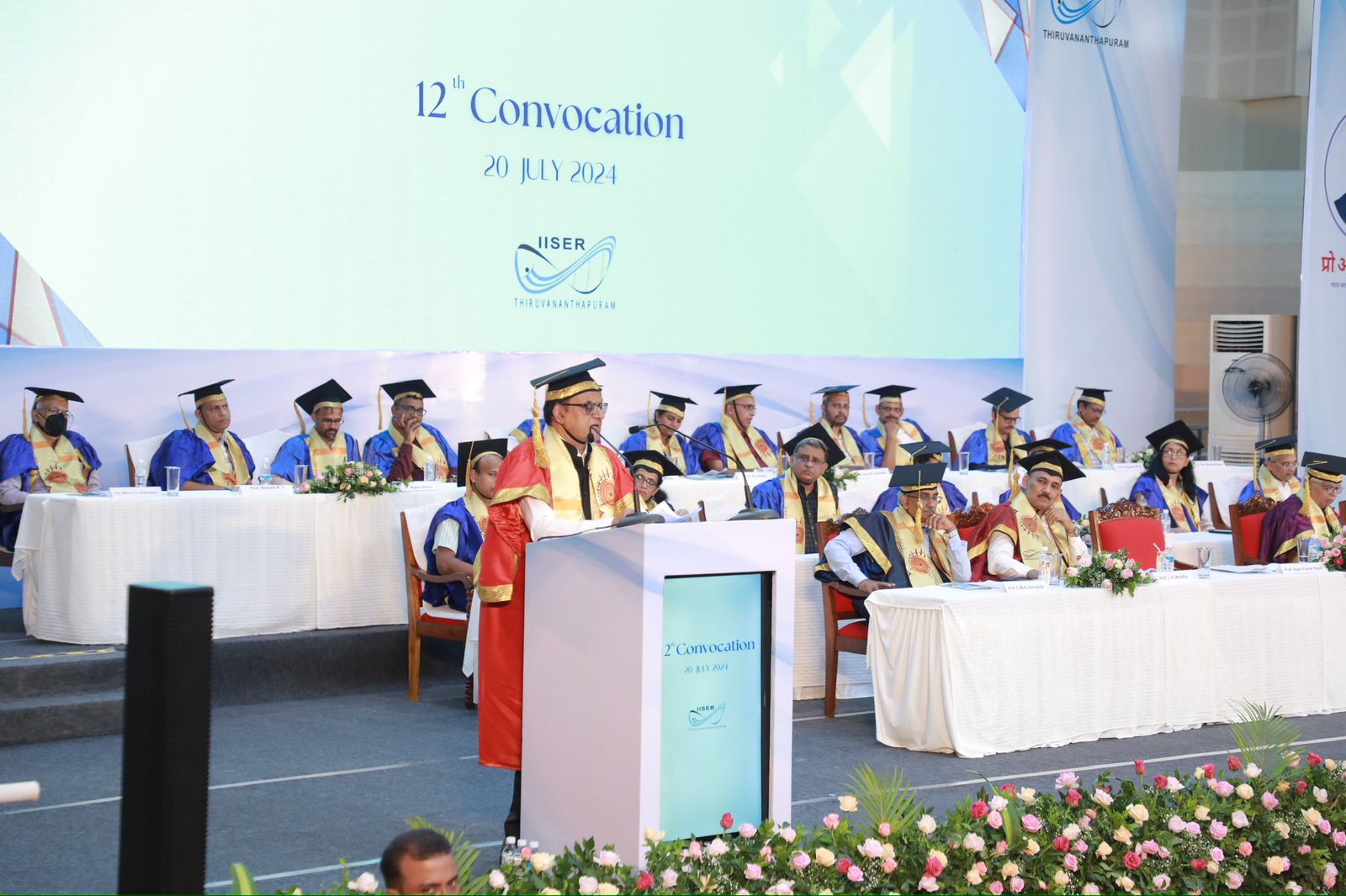 ആധുനികവും സമഗ്രവുമായ ഗവേഷണ-സംയോജിത വിദ്യാഭ്യാസത്തിന് ശേഷം 190 ബിഎസ്-എംഎസ്, 70 എംഎസ്സി, 16 എംഎസ് (റിസർച്ച്), 26 പിഎച്ച്ഡി, 24 സംയോജിത പിഎച്ച്ഡി വിദ്യാർത്ഥികൾക്ക് പന്ത്രണ്ടാം ബിരുദദാനച്ചടങ്ങിൽ ഐസർ ഡയറക്ടർ പ്രൊഫ. ജെ. എൻ. മൂർത്തി ബിരുദങ്ങൾ നൽകി.