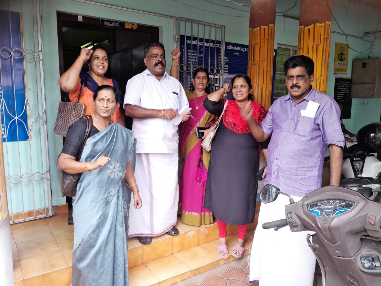എൽഡിഎഫ് അംഗങ്ങളായ കെ ജി ഉദയകുമാർ , തുളസി മോഹൻ ,പുഷ്പ ഉത്തമൻ , ജോയ്സ് എബ്രഹാം, ജിഷ ജയകുമാർ എന്നിവരാണ് സമരം നടത്തിയത്. ബിജെപി അംഗം സോമൻ പിള്ളയും പഞ്ചായത്ത് കമ്മിറ്റി ബഹിഷ്കരിച്ചു.