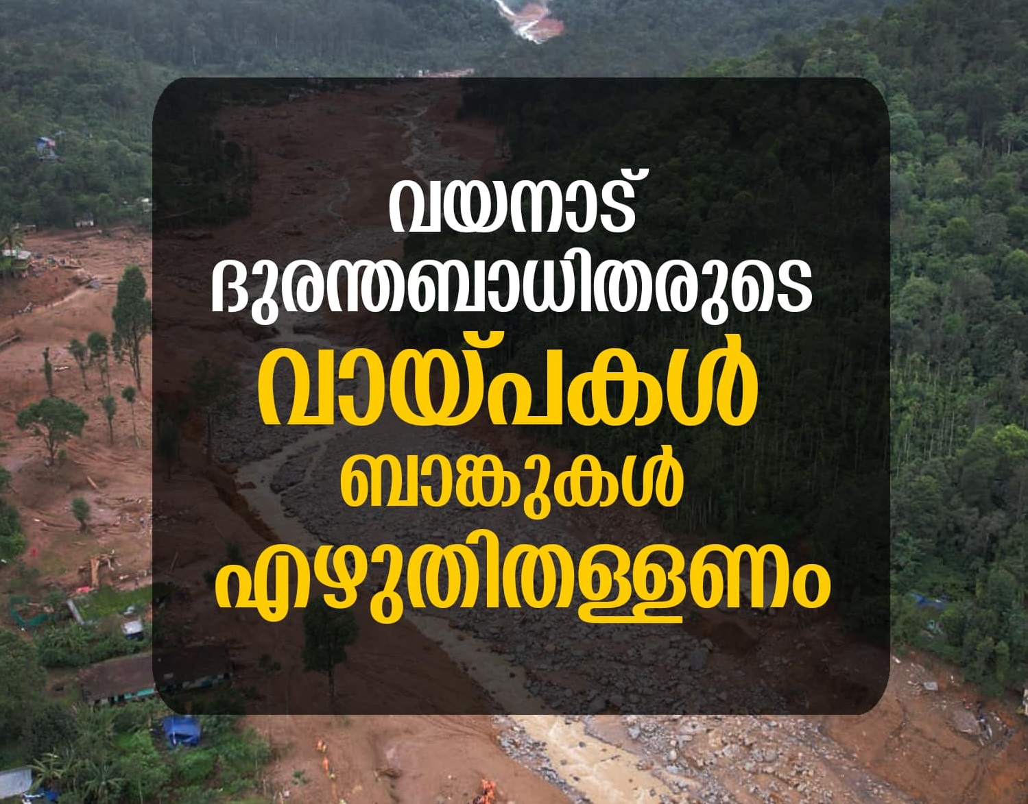 സമാനതകളില്ലാത്ത ദുരന്തമാണ് വയനാട്ടിലുണ്ടായത്. ദുരന്ത ബാധിതരിൽ കാർഷിക വൃത്തിയിലേർപ്പെടുന്നവരാണ് ഭൂരിഭാഗം. അതേസമയം ദുരന്തത്തിൽ കൃഷിഭൂമി ഒലിച്ചു പോവുകയും, ഭൂമിയുടെ സ്വഭാവം തന്നെ മാറുകയും ചെയ്തു. വിദ്യാഭ്യാസം, വീട്, കൃഷി തുടങ്ങിയ വിവിധ ആവശ്യങ്ങൾക്കായി വായ്പയെടുത്തവരാണ് അധികവും. ഇതിൽ മുഴുവൻ കുടുംബാംഗങ്ങളെയും നഷ്ടപ്പെട്ട വ്യക്തികളുണ്ട് എന്നത് കാണാതെ പോകരുത്. ബാങ്കുകളെ സംബന്ധിച്ചടുത്തോളം അവരുടെ ആകെ സാമ്പത്തിക ഇടപാടിന്റെ തുച്ഛമായ ഭാഗം മാത്രമായിരിക്കും ഈ ഇടപെടലിന്റെ ഭാഗമായി കുറവു വരുന്നത്. സാധാരണ ഘട്ടങ്ങളിൽ എഴുതിത്തള്ളുന്ന വായ്പ സർക്കാർ തിരിച്ചടക്കുന്ന സമീപനത്തിന് പ്രതീക്ഷിക്കാതെ, ബാങ്കുകൾ സ്വന്തം നിലയിൽ ദുരിതാശ്വാസ സഹായങ്ങൾക്ക് ഒപ്പം നിൽക്കണം. ഇതിൽ കേരള ബാങ്ക് സ്വീകരിച്ച സമീപനം മാതൃകാ പരമാണ്. ദുരന്തബാധിതരുടെ മുഴുവൻ വായ്പകളും എഴുതിത്തള്ളിയ കേരള ബാങ്കിന്റെ മാതൃക മറ്റ് ബാങ്കുകളും സ്വീകരിക്കുമെന്നാണ് പ്രതീക്ഷ.