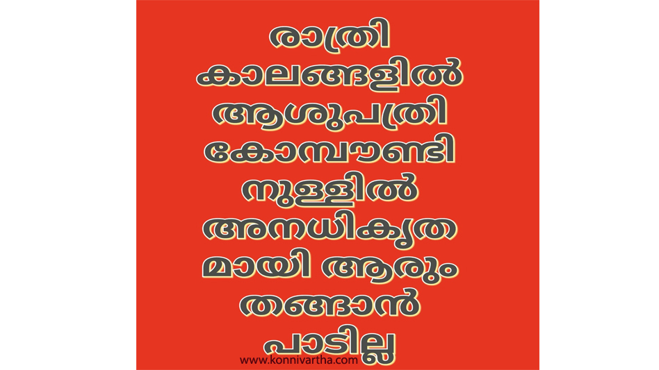 Read Moreരാത്രി കാലങ്ങളിൽ ആശുപത്രി കോമ്പൗണ്ടിനുള്ളിൽ അനധികൃതമായി ആരും തങ്ങാൻ പാടില്ല