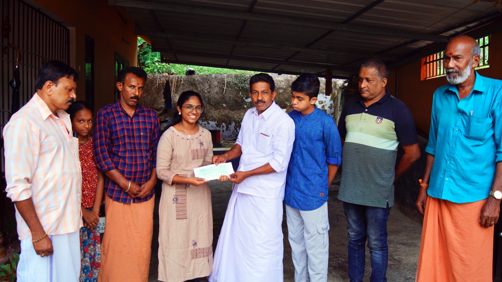 konnivartha.com: പത്തനംതിട്ട കോന്നി മുതുപേഴുങ്കൽ സ്വദേശ്ശിനി കാവ്യ പ്രേംകുമാറിന്റെ Bsc Nursing പഠനത്തിന് നായർസ് വെൽഫെയർ ഫൌണ്ടേഷൻ അനുവദിച്ച വിദ്യാസഹായനിധി,കാവ്യയുടെ ഭവനത്തിൽ എത്തി, അരുവാപ്പുലം ഗ്രാമ പഞ്ചായത്ത് അംഗം ശ്രീകുമാർ ഗോകുലം കാവ്യ പ്രേംകുമാറിന് കൈമാറി .