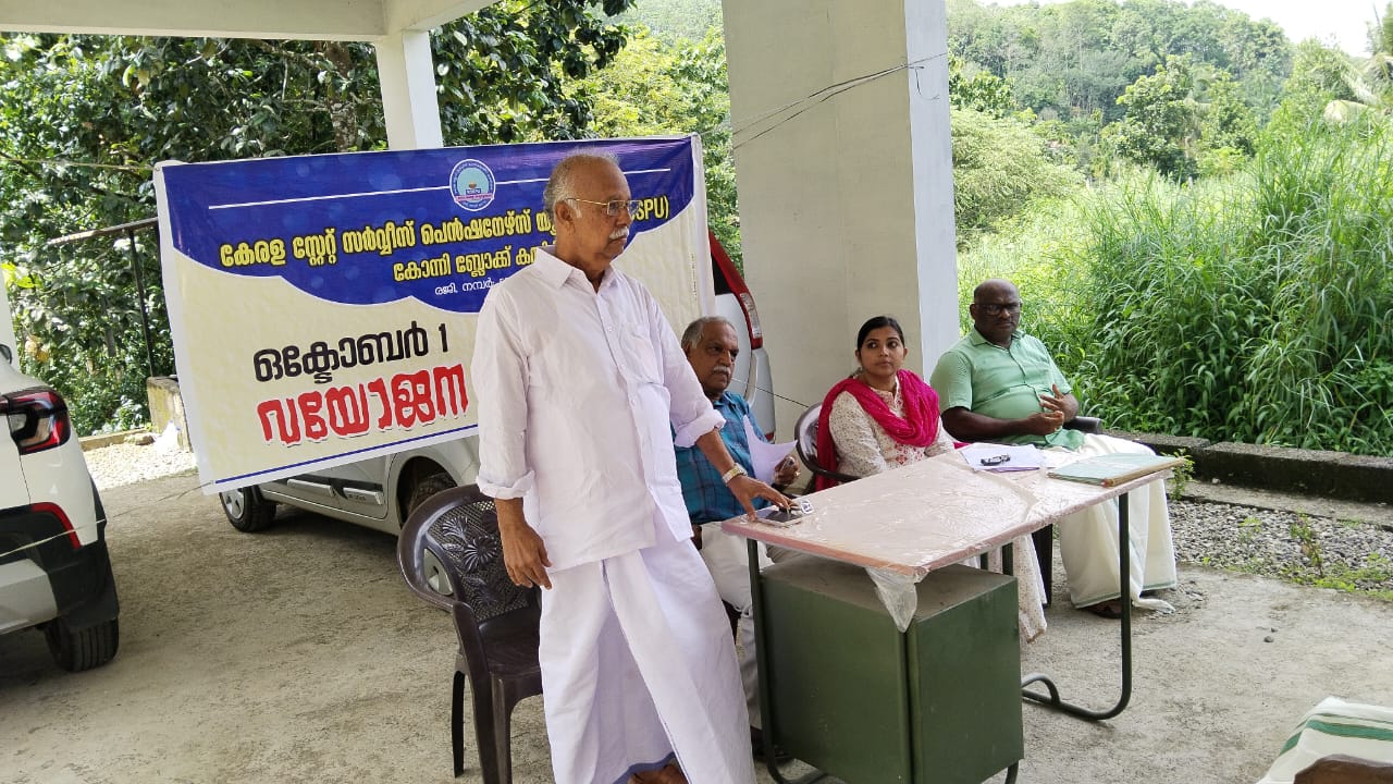 കോന്നി താലൂക്ക് ആശുപത്രി പാലിയേറ്റീവ് നേഴ്സിംഗ് ആഫീസർ രമ്യ എസ്. വയോജന ക്ലാസ് നയിച്ചുജി. വിൽസൺ , വിദ്യാധരൻ,ഇ .പി. അയ്യപ്പൻനായർ എന്നിവര് സംസാരിച്ചു . ബ്ലോക്ക് കമ്മിറ്റി സെക്രട്ടറിഎൻ. എസ്. മുരളീമോഹൻ സ്വാഗതവും ട്രഷറർ പി.ജി. ശശിലാൽ കൃതജ്ഞതയും പറഞ്ഞു.