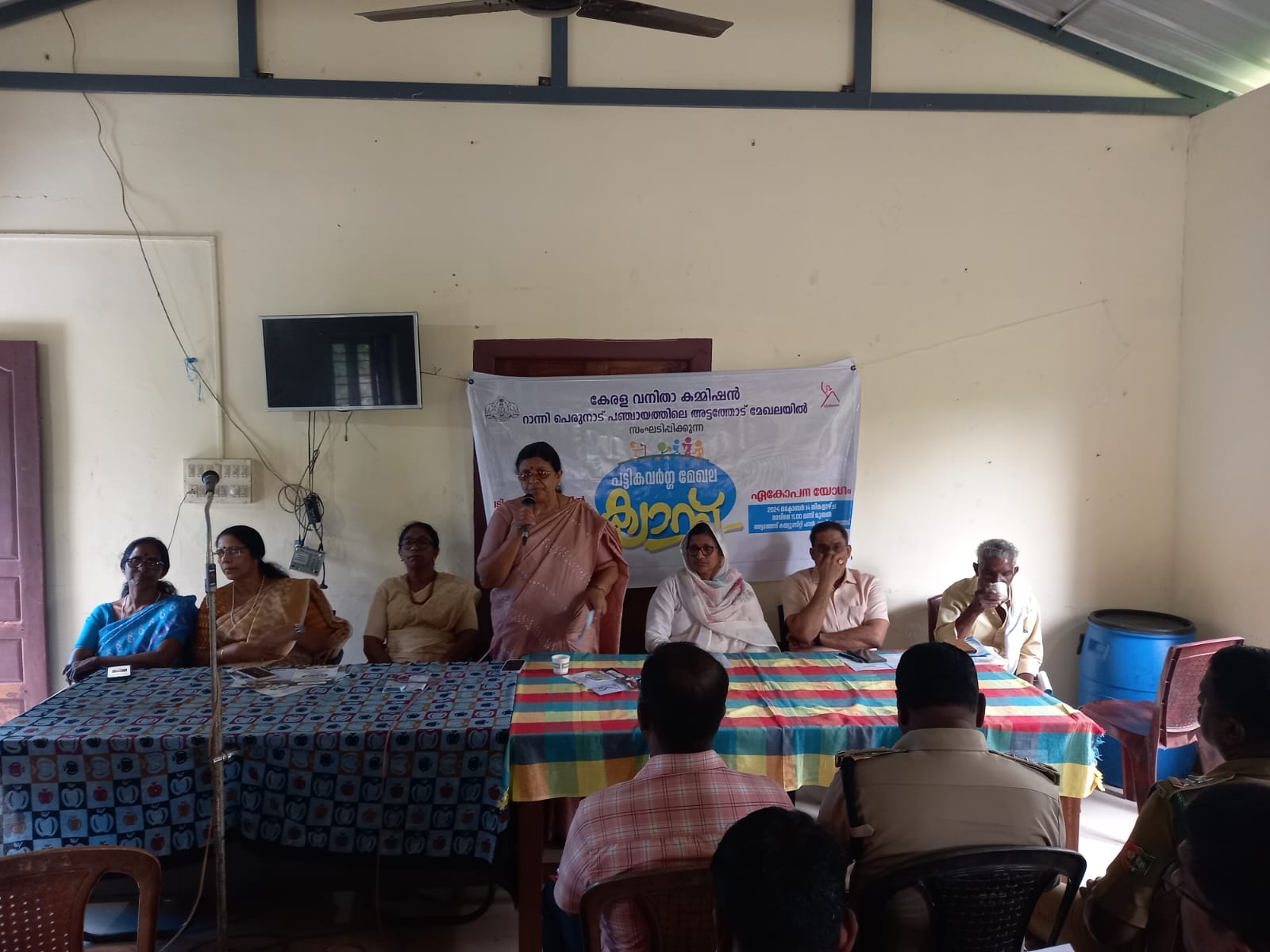 വനിതാ കമ്മീഷന് അംഗം അഡ്വ. ഇന്ദിരാ രവീന്ദ്രന് അധ്യക്ഷയായിരുന്നു. കമ്മീഷന് അംഗങ്ങളായ അഡ്വ. എലിസബത്ത് മാമന് മത്തായി, വി.ആര്. മഹിളാമണി, അഡ്വ. പി. കുഞ്ഞായിഷ, പെരുനാട് പഞ്ചായത്ത് പ്രസിഡന്റ് പി.എസ്. മോഹനന്, കമ്മീഷന് ഡയറക്ടര് ഷാജി സുഗുണന് ഐപിഎസ്, ലോ ഓഫീസര് ചന്ദ്രശോഭ, ഡിടിഡിഒ പ്രതിനിധി എസ്.എ. നജീം, പെരുന്നാട് പഞ്ചായത്ത് വൈസ് പ്രസിഡന്റ് ഡി. ശ്രീകല, വികസന സ്റ്റാന്ഡിങ് കമ്മിറ്റി ചെയര്മാന് സി.എസ്. സുകുമാരന്, ക്ഷേമകാര്യ സ്റ്റാന്ഡിങ് കമ്മിറ്റി ചെയര്പേഴ്സണ് മോഹിനി വിജയന്, ആരോഗ്യകാര്യ സ്റ്റാന്ഡിങ് കമ്മിറ്റി ചെയര്മാന് എം.എസ്. ശ്യാം, വാര്ഡ് മെമ്പര് മഞ്ജു പ്രമോദ്, പഞ്ചായത്ത് സെക്രട്ടറി എന്. സുനില്കുമാര് തുടങ്ങിയവര് സംസാരിച്ചു.. തുടര്ന്ന് നടക്കുന്ന ചര്ച്ചയ്ക്ക് വനിത കമ്മീഷന് റിസര്ച്ച് ഓഫീസര് എ.ആര്. അര്ച്ചന നേതൃത്വം നല്കി.
