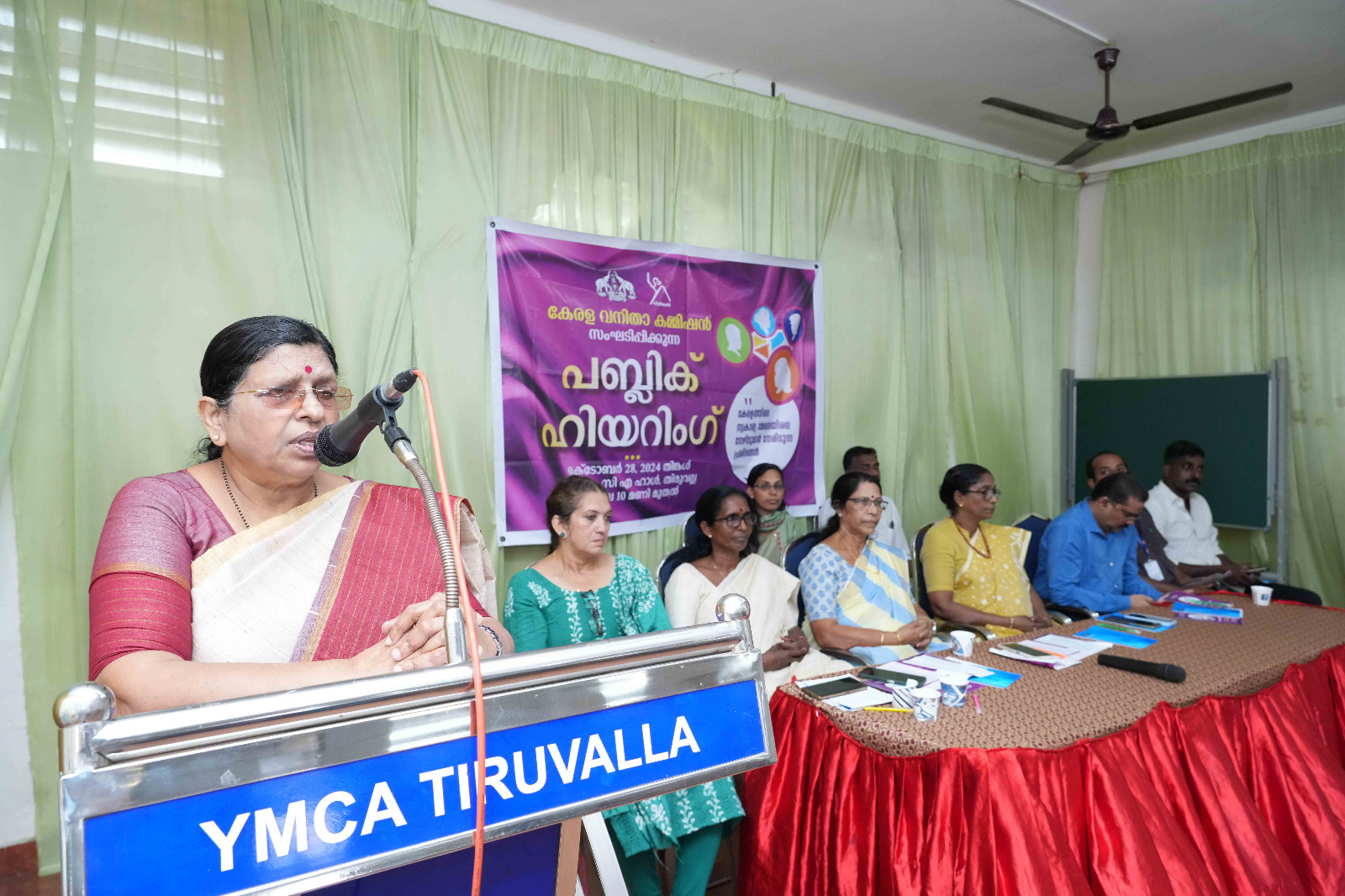 തിരുവല്ല വൈഎംസിഎ ഹാളില് നടന്ന പബ്ലിക് ഹിയറിങ്ങില് വനിത കമ്മീഷന് അംഗം അഡ്വ. ഇന്ദിരാ രവീന്ദ്രന് അധ്യക്ഷയായിരുന്നു. വനിതാ കമ്മീഷന് അംഗങ്ങളായ അഡ്വ. എലിസബത്ത് മാമന് മത്തായി, വി.ആര്. മഹിളാമണി, ഡയറക്ടര് ഷാജി സുഗുണന് ഐപിഎസ്, പത്തനംതിട്ട ജില്ല ലേബര് ഓഫീസര് എസ്. സുരാജ്, യുഎന്എ ഭാരവാഹികളായ ജോണ് മുക്കത്ത് ബഹനാന്, റെജി ജോണ്, ലിന്സി തുടങ്ങിയവര് സംസാരിച്ചു. ചര്ച്ചകള്ക്ക് വനിതാ കമ്മീഷന് റിസര്ച്ച് ഓഫീസര് എ.ആര്. അര്ച്ചന നേതൃത്വം നല്