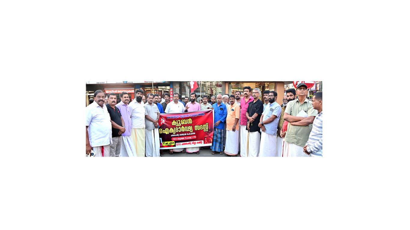 konnivartha.com: പത്തനംതിട്ട :അമേരിക്കയുടെ ക്യൂബൻ ഉപരോധത്തിനെതിരായി സി ഐ ടി യു സംസ്ഥാന വ്യാപകമായി ക്യൂബൻ ഐക്യദാർഢ്യ സദസ്സ് സംഘടിപ്പിച്ചു.പത്തനംതിട്ട സെൻട്രൽ ജംഗ്ഷനിൽ സി ഐ ടി യു പ്രവർത്തകർ ഒരുമിച്ച് നിന്ന് ബാനർ ഉയർത്തി നടത്തിയ ക്യൂബൻ ഐക്യദാർഢ്യ സദസ്സ് സി ഐ ടി യു ജില്ലാ പ്രസിഡന്റ് എസ്. ഹരിദാസ് ഉദ്ഘാടനം ചെയ്തു.