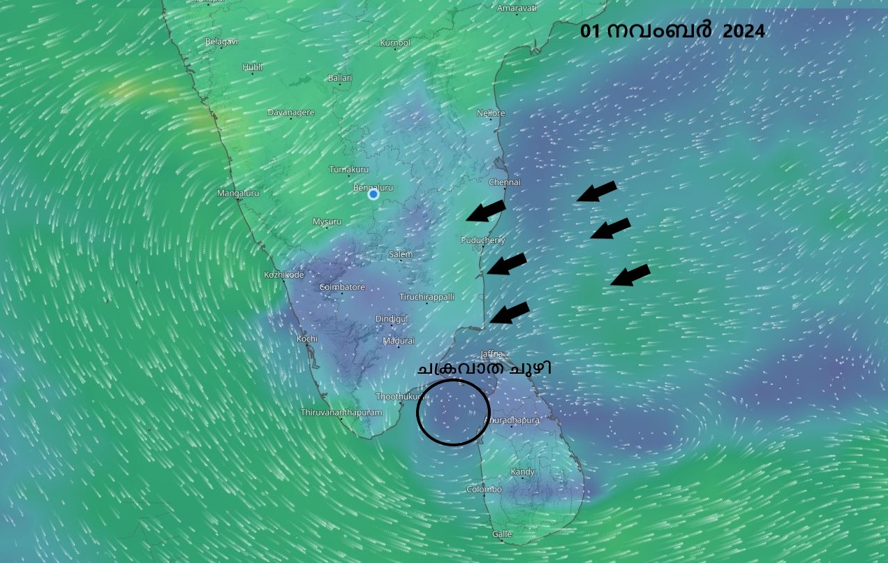 01/11/2024 & 02/11/2024: തെക്കൻ തമിഴ്നാട് തീരം, കന്യാകുമാരി പ്രദേശം, ഗൾഫ് ഓഫ് മാന്നാർ എന്നിവിടങ്ങളിൽ മണിക്കൂറിൽ 35 മുതൽ 45 കിലോമീറ്റർ വരെയും ചില അവസരങ്ങളിൽ മണിക്കൂറിൽ 55 കിലോമീറ്റർ വരെയും വേഗതയിൽ ശക്തമായ കാറ്റിനും മോശം കാലാവസ്ഥയ്ക്കും സാധ്യത.