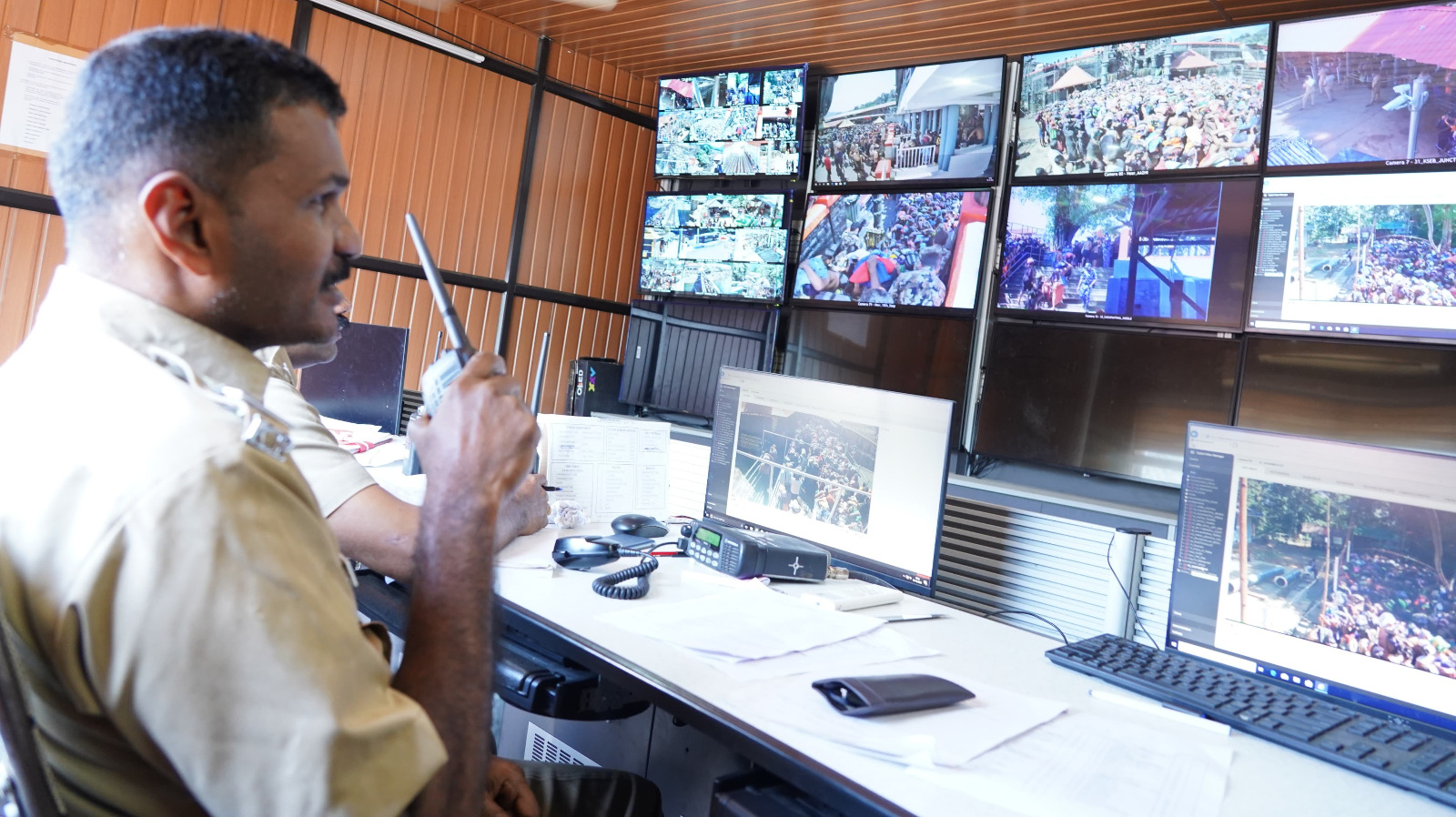 ക്ഷേത്ര പരിസരം 24 മണിക്കൂറും പൊലീസിന്‍റെ 16 ഉം വിജിലൻസിൻ്റെ 32 ഉം ക്യാമറകളുടെ നിരീക്ഷണത്തിലാണ്. ചാലക്കയം മുതല്‍ പാണ്ടിത്താവളം വരെ പൊലീസ് 60 ക്യാമറകളാണ് സ്ഥാപിച്ചിട്ടുള്ളത്. സന്നിധാനത്തെ കണ്‍ട്രോള്‍ റൂമിൻ്റെ മേല്‍നോട്ടം പൊലീസ് സ്പെഷ്യല്‍ ഓഫിസർ പി.ബിജോയ്‌ക്കാണ്‌. ക്യാമറയിൽ പതിയുന്ന നിയമലംഘനങ്ങലെ ആധാരമാക്കി അപ്പപ്പോൾ നടപടികൾ സ്വീകരിച്ചു വരികയാണെന്നും പമ്പ മുതൽ സോപാനം വരെയുള്ള തത്സമയ ദൃശ്യങ്ങൾ ലഭിക്കുന്നതിനാൽ തീർഥാടകരുടെ തിരക്ക് നിയന്ത്രിക്കാൻ സഹായകമാണെന്നും പി. ബിജോയ്‌ പറഞ്ഞു. തീർഥാടകരുടെ ആവശ്യാനുസരണം മെഡിക്കൽ ടീം, ആംബുലൻസ്, ട്രോളി, അഗ്നി ശമന വിഭാഗം എന്നിവരെ അറിയിക്കാനും സി സി ടി വി ക്യാമറകൾ ഉപയോഗപ്പെടുന്നുണ്ട്.
