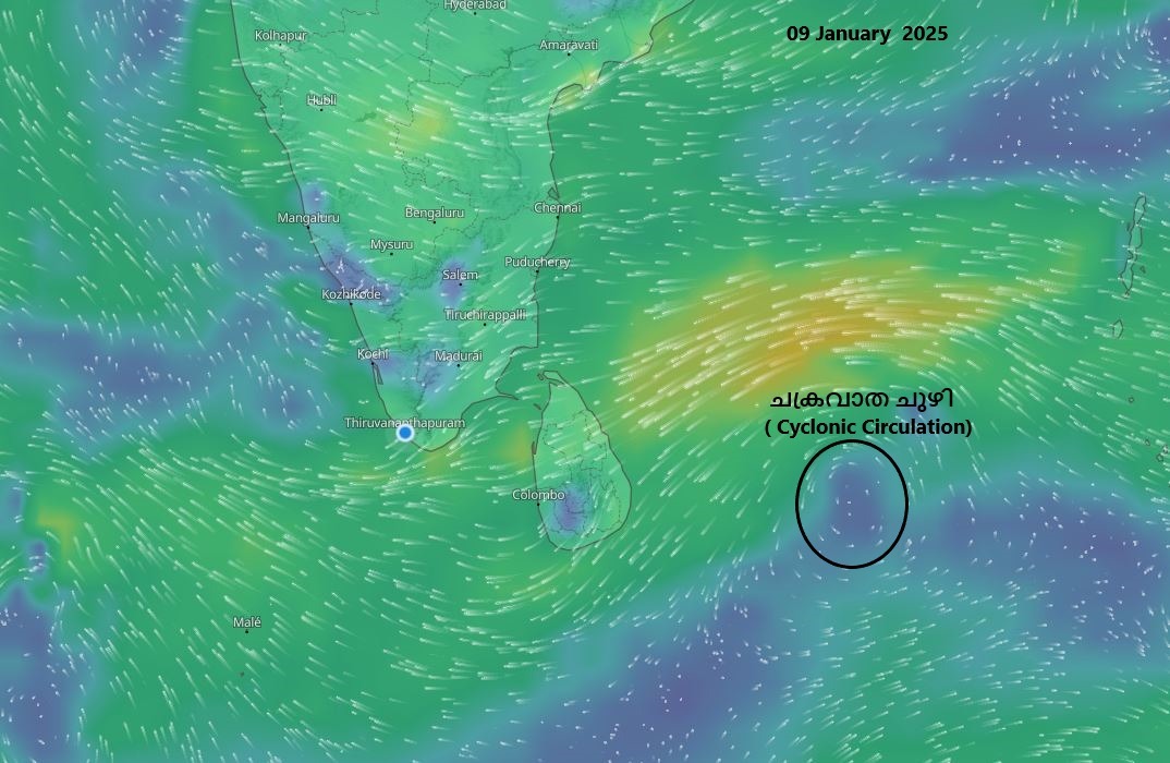ചക്രവാതചുഴി :ജനുവരി 12, 13 തീയതികളിൽ മഴയ്ക്ക് സാധ്യത
