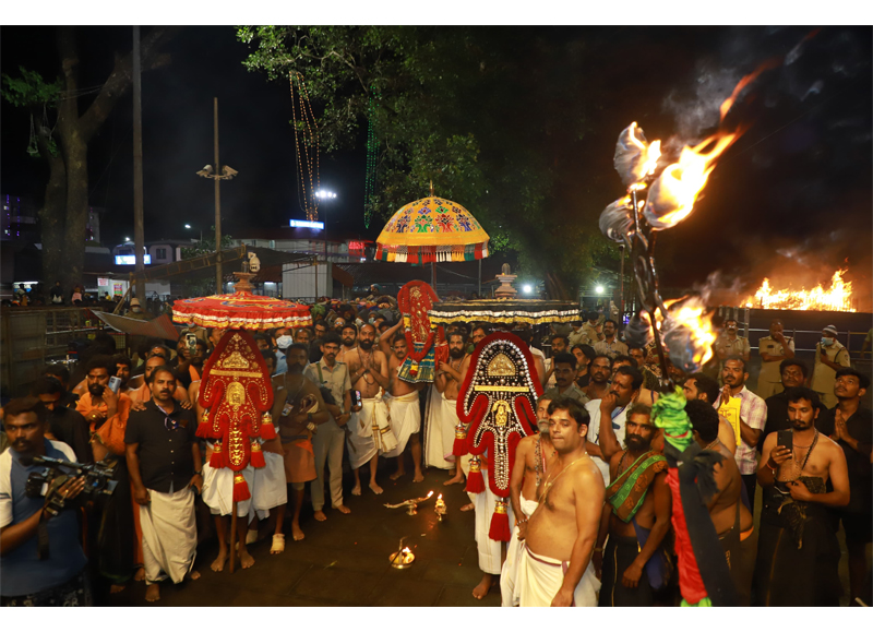 konnivartha.com: മകരവിളക്ക് ഉത്സവത്തോടനുബന്ധിച്ച് മണിമണ്ഡപത്തിൽ കളമെഴുത്തിനും മാളികപ്പുറത്തു നിന്ന് പതിനെട്ടാം പടി വരെയുള്ള നായാട്ടു വിളിക്കും വിളക്കെഴുന്നള്ളിപ്പിനും തുടക്കമായി. മകരവിളക്ക് മുതൽ അഞ്ചു നാൾ മാളികപ്പുറത്ത് നിന്ന് സന്നിധാനത്തേക്ക് എഴുന്നള്ളിപ്പ് ഉണ്ടാവും. ആദ്യദിനത്തിലെ എഴുന്നള്ളിപ്പ് 14ന് രാത്രി 10:30ന് വാദ്യമേളങ്ങളുടെ അകമ്പടിയോടെ സന്നിധാനത്ത് എത്തി മടങ്ങി.