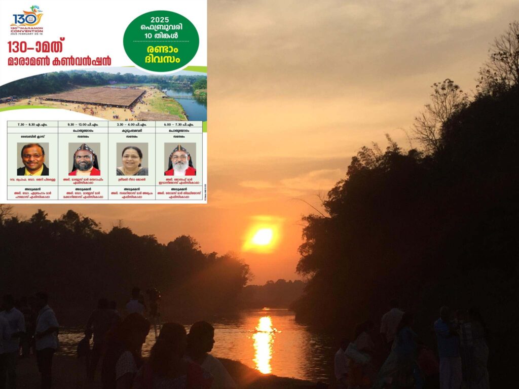konnivartha.com: 130-ാമത് മാരാമൺ കൺവൻഷന് പമ്പാനദിയുടെ മണൽപരപ്പിൽ തുടക്കം .16നു സമാപിക്കും.ഡോ. തിയഡോഷ്യസ് മാർത്തോമ്മാ മെത്രാപ്പൊലീത്ത ഉദ്ഘാടനം ചെയ്തു .സുവിശേഷ പ്രസംഗസംഘം പ്രസിഡന്റ് ഡോ. ഐസക്ക് മാർ പീലക്സിനോസ് അധ്യക്ഷത വഹിച്ചു .അഖിലലോക സഭാ കൗൺസിൽ ജനറൽ സെക്രട്ടറി റവ. ഡോ. ജെറി പിള്ളൈ മുഖ്യ സന്ദേശംനല്കി .കൊളംബിയ തിയളോജിക്കൽ സെമിനാരി പ്രസിഡന്റ് റവ. ഡോ. വിക്ടർ അലോയോ, ഡോ. രാജ്കുമാർ രാംചന്ദ്രൻ (ഡൽഹി) എന്നിവരാണ് ഈ വർഷത്തെ മറ്റു മുഖ്യ പ്രസംഗകർ.