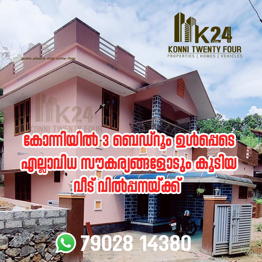 കോന്നിയില്‍ 3 ബെഡ്‌റൂം ഉള്‍പ്പെടെ എല്ലാവിധ സൗകര്യങ്ങളോടും കൂടിയ വീട് വില്‍പ്പനയ്ക്ക്