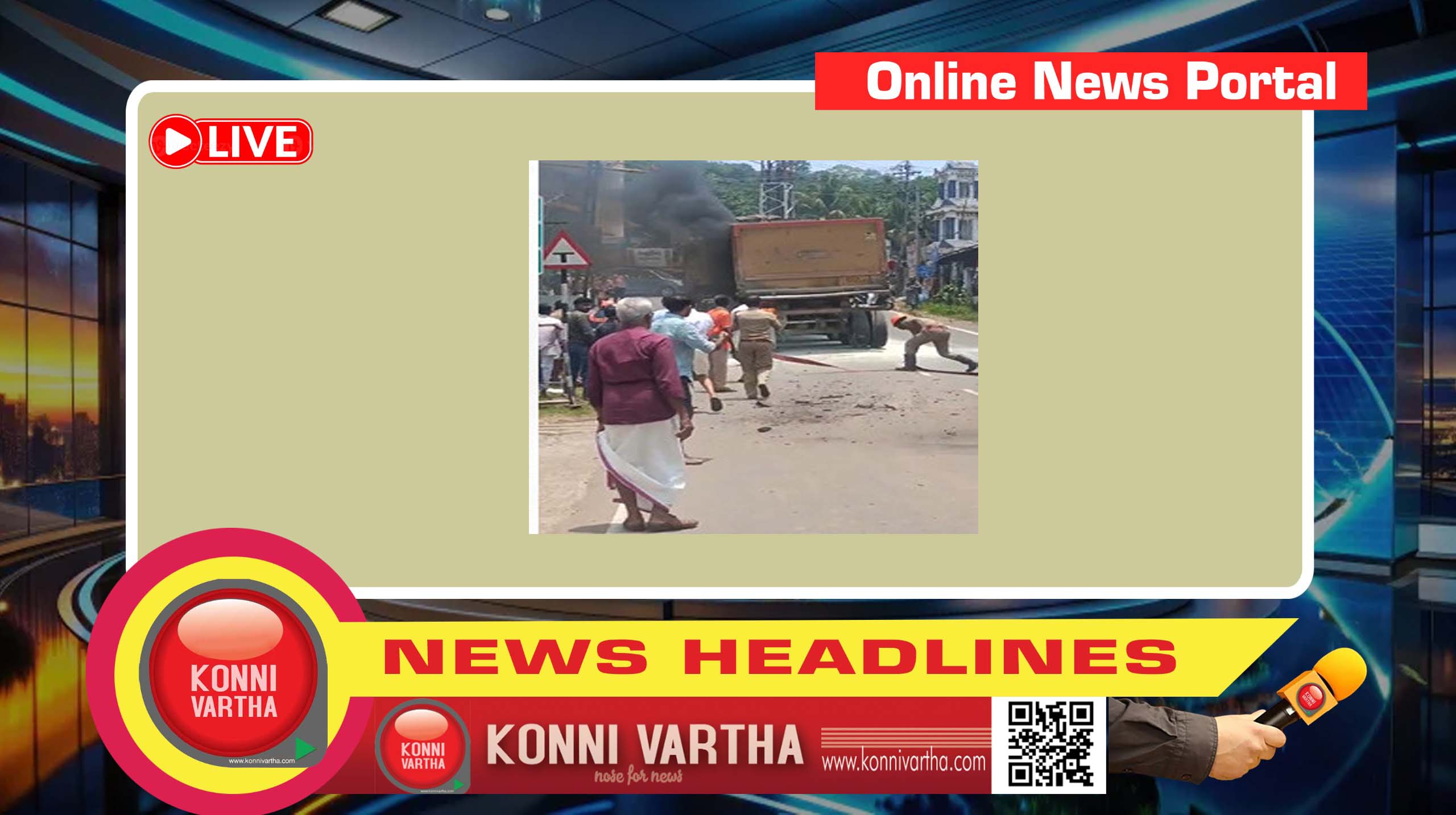 konnivartha.com:ഓടിവന്ന കൂറ്റൻ ട്രെയിലറിന്റെ ടയർ വലിയ ശബ്ദത്തോടെ പൊട്ടിത്തെറിച്ചു പിന്നാലെ ടയറിന്റെ ഭാഗത്ത് തീ ആളിപ്പടർന്നു .പെട്രോൾ പമ്പിന് മുന്നിൽ നിന്ന് വാഹനം കത്തിയെങ്കിലും നാട്ടുകാരും ഫയർഫോഴ്സും മനസ്സാന്നിധ്യം കൈവിടാതെ പരിശ്രമിച്ചു അഗ്നിബാധ ഒഴിവാക്കി.
