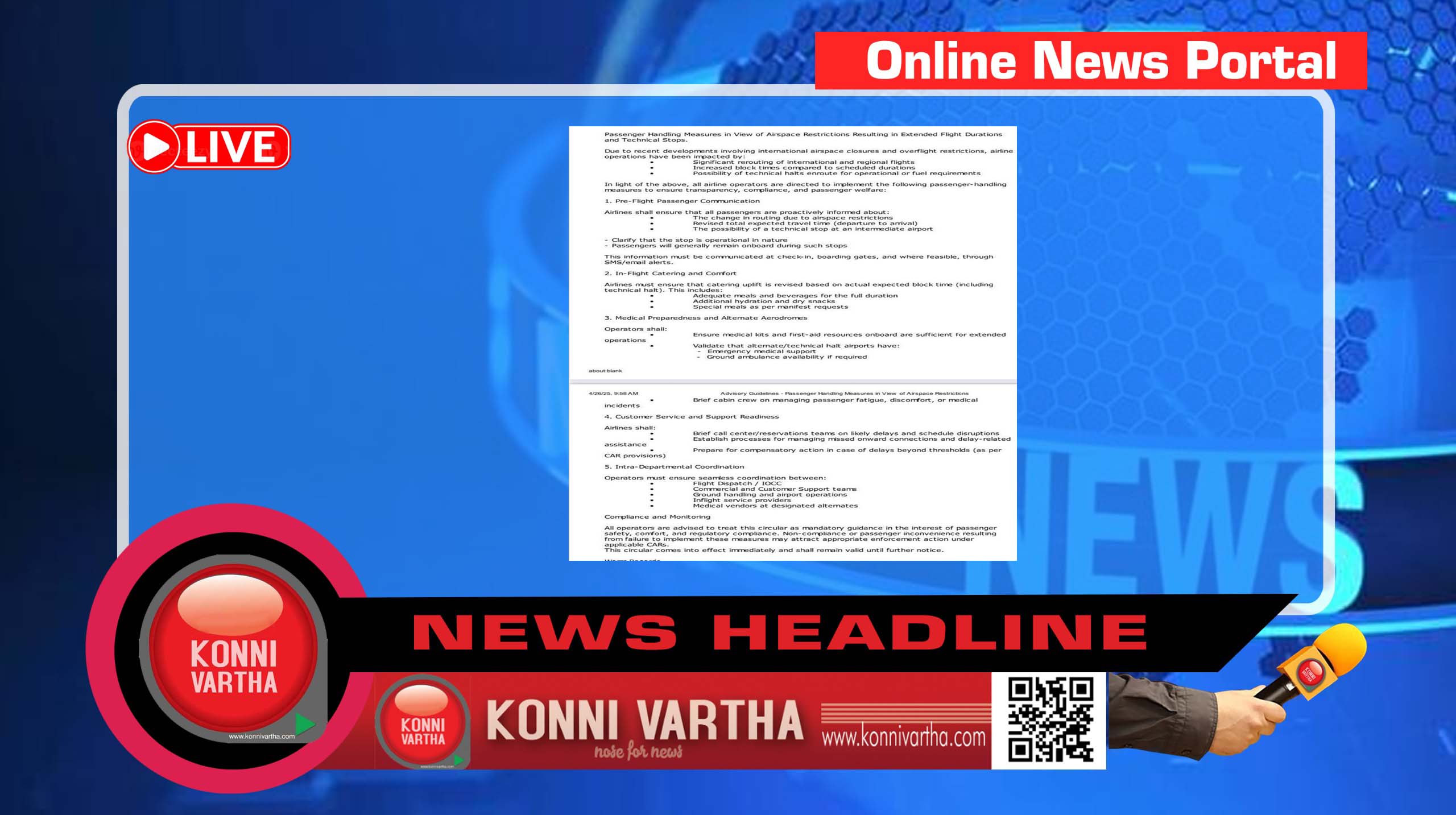 konnivartha.com: In the light of the recent international airspace closures and overflight restrictions, several flight routes have been significantly altered, leading to extended flight durations and the possibility of technical stops. To ensure continued passenger comfort, safety, and regulatory compliance, Director General of Civil Aviation (DGCA) has directed all airline operators to implement enhanced passenger handling measures with immediate effect.