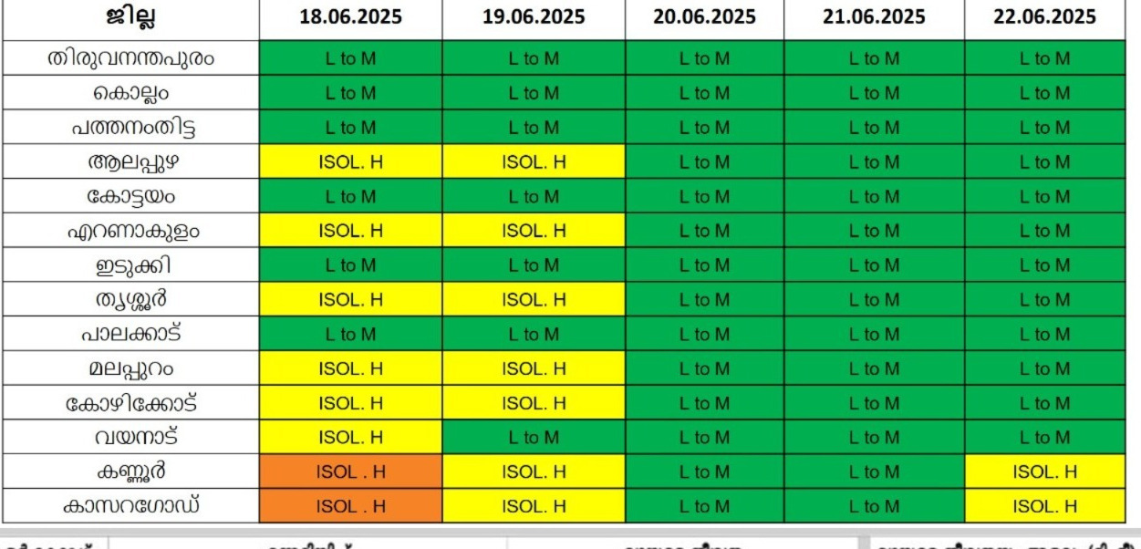 19/06/2025 : ആലപ്പുഴ, എറണാകുളം, തൃശ്ശൂർ, മലപ്പുറം, കോഴിക്കോട്, കണ്ണൂർ, കാസറഗോഡ്