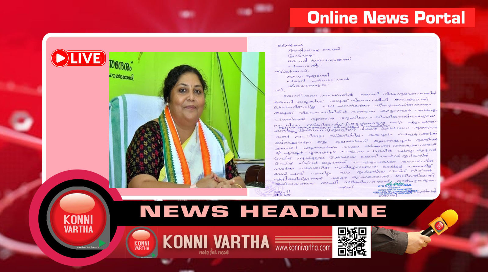 konnivartha.com: കോന്നി താലൂക്ക് വികസനസമിതി കാര്യക്ഷമമായി പ്രവർത്തിക്കുന്നില്ലെന്നുകാണിച്ച് കോന്നി പഞ്ചായത്ത് പ്രസിഡന്റ് അനി സാബു തോമസ് മുഖ്യമന്ത്രിക്ക് പരാതി നൽകി.