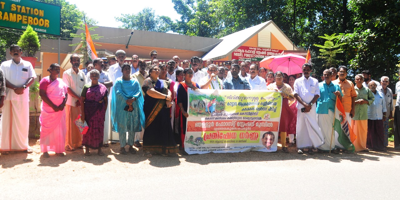 കാട്ടാന ആക്രമണത്തിൽ ദുരിതത്തിലായ ഗ്രാമവാസികളെ പങ്കെടുപ്പിച്ച് കോൺഗ്രസ് മണ്ഡലം കമ്മിറ്റി വനം വകുപ്പിൻ്റെ ഞളളൂർ മാതൃകാ ഓഫീസിന് മുമ്പിൽ സംഘടിപ്പിച്ച പ്രതിഷേധ ധർണ്ണ ഉദ്ഘാടനം ചെയ്യുകയായിരുന്നു അദ്ദേഹം.
