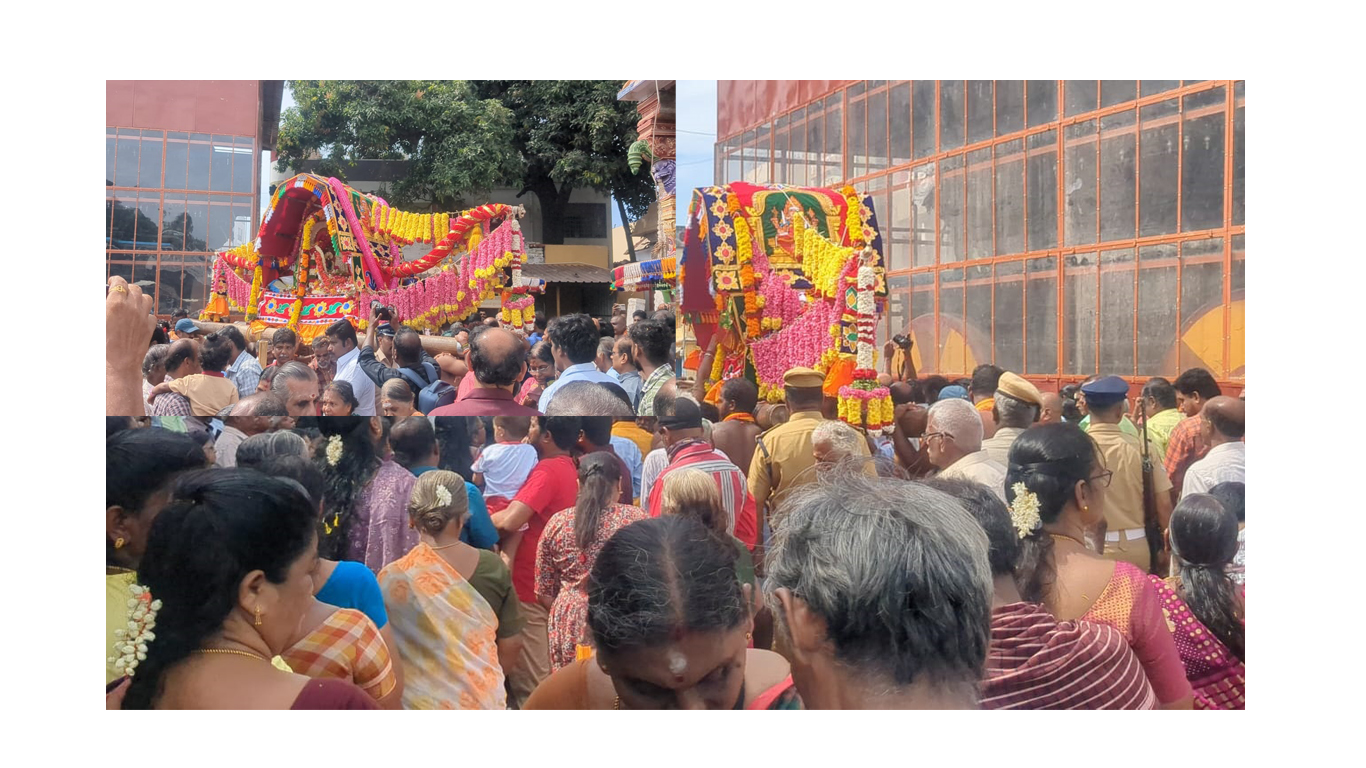 konnivartha.com: നവരാത്രി മഹോത്സവത്തോടനുബന്ധിച്ച് തമിഴ്നാട്ടിലെ പത്മനാഭപുരം കൊട്ടാരത്തിൽ നിന്ന് സരസ്വതിദേവി വിഗ്രഹവും, ശുചീന്ദ്രത്ത് നിന്നും ശുചീന്ദ്രം ദേവി (മുന്നൂറ്റി നങ്ക) വിഗ്രഹവും കുമാരകോവിലിൽ നിന്നും കുമാരസ്വാമി വിഗ്രഹവും വെള്ളിക്കുതിരയും പത്മനാഭപുരം കൊട്ടാരത്തിൽ സൂക്ഷിച്ചിരിക്കുന്ന തിരുവിതാംകൂർ മഹാരാജാവിന്റെ ഉടവാളിനോടൊപ്പം ഘോഷയാത്രയായി സെപ്റ്റംബർ മാസം 20ന് തമിഴ്നാട്ടിൽ നിന്നും യാത്ര തിരിക്കും. ഇതിന് മുന്നോടിയായി ശുചീന്ദ്രം ദേവി (മുന്നൂറ്റി നങ്ക) യുടെ പല്ലക്ക് ഘോക്ഷയാത്രയ്ക്ക് ഭക്തലക്ഷങ്ങള്‍ വരവേല്‍പ്പ് നല്‍കി .