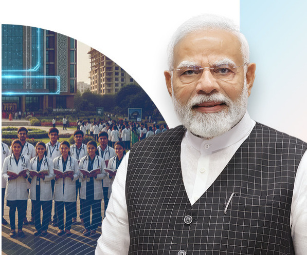 ഇന്ത്യയുടെ ആരോഗ്യ വിദ്യാഭ്യാസവും തൊഴിൽ ശക്തിയുടെ അടിസ്ഥാന സൗകര്യങ്ങളും സമീപ വർഷങ്ങളിൽ ഗണ്യമായ വളർച്ച കൈവരിച്ചു. ഇത് ആരോഗ്യസേവന ലഭ്യത വർദ്ധിപ്പിക്കുന്നതിലും ഗുണനിലവാരം മെച്ചപ്പെടുത്തുന്നതിലും ഗവണ്മെന്റ് ശ്രദ്ധ കേന്ദ്രീകരിക്കുന്നു എന്നതിനെ സൂചിപ്പിക്കുന്നു. നിലവിൽ, ലോകത്ത് ഏറ്റവും കൂടുതൽ മെഡിക്കൽ കോളേജുകളുള്ളത് ഇന്ത്യയിലാണ്. 808 മെഡിക്കൽ കോളേജുകളിലായി 1,23,700 എം.ബി.ബി.എസ്. സീറ്റുകളുണ്ട്. കഴിഞ്ഞ ഒരു പതിറ്റാണ്ടിനിടെ, 69,352 പുതിയ എം.ബി.ബി.എസ്. സീറ്റുകൾ വർദ്ധിച്ചു, ഇത് 127% വളർച്ചയാണ്. ഇതേ കാലയളവിൽ 43,041 പി.ജി. സീറ്റുകൾ വർദ്ധിച്ചു, 143% വളർച്ചയാണ് ഇതിലുണ്ടായത്. മെഡിക്കൽ സീറ്റുകളുടെ എണ്ണത്തിലുണ്ടായ ഈ വളർച്ച ശ്രദ്ധേയമാണെങ്കിലും, ചില മേഖലകളിൽ ആരോഗ്യപരിരക്ഷയുടെ ആവശ്യകത, ലഭ്യത, താങ്ങാനാവുന്ന ചെലവ് എന്നിവ ഉറപ്പാക്കാൻ ശേഷി ഇനിയും വർദ്ധിപ്പിക്കേണ്ടതുണ്ട്.
