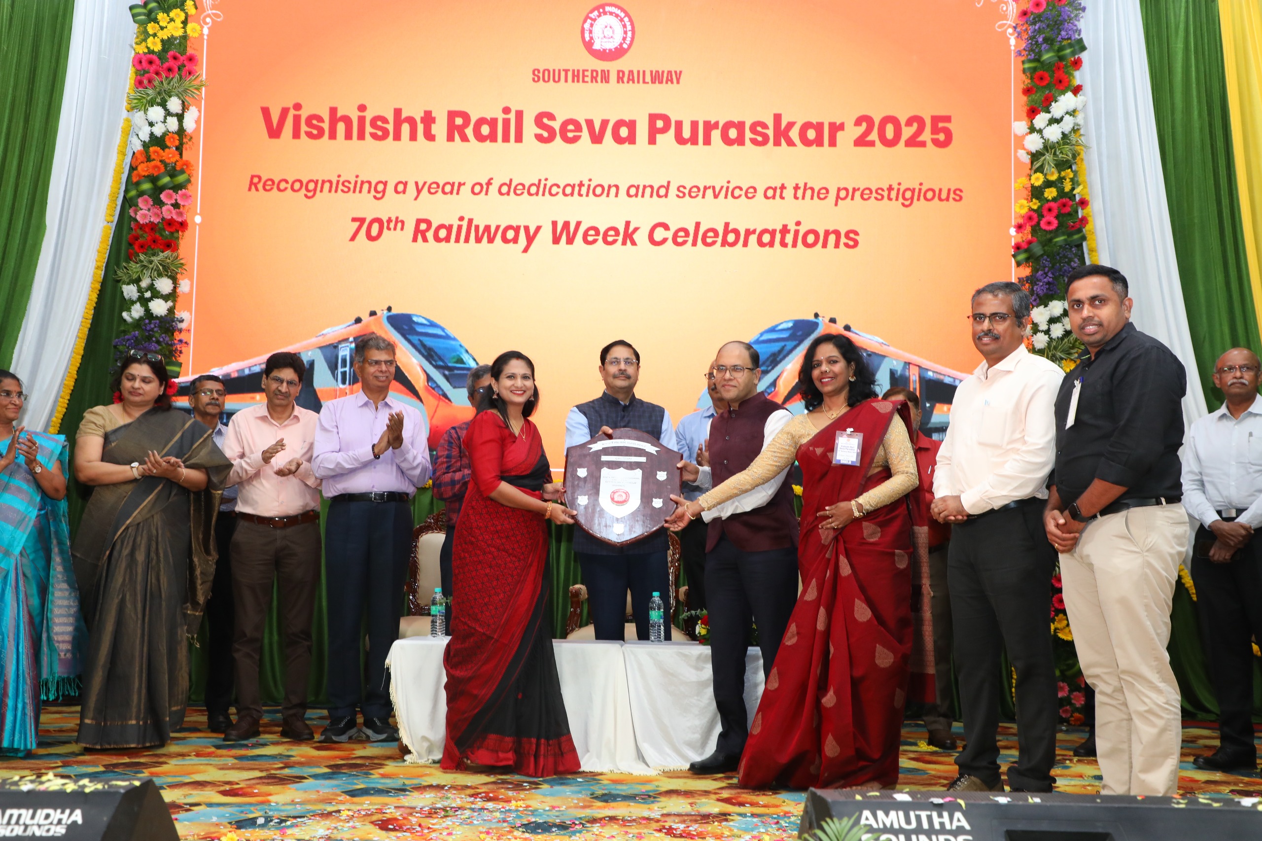 konnivartha.com; ദക്ഷിണ റെയിൽവേയുടെ 70-ാമത് റെയിൽവേ വാരാഘോഷങ്ങളുടെ ഭാഗമായി നടന്ന ‘വിശിഷ്ട് റെയിൽ സേവാ പുരസ്കാരം 2025’ അവാർഡ് വിതരണച്ചടങ്ങിൽ തിളങ്ങി തിരുവനന്തപുരം റെയിൽവേ ഡിവിഷൻ.