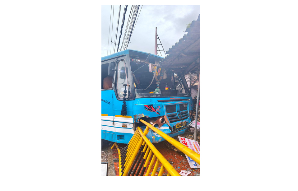 കൈവരി തകര്‍ത്തു ബസ്സ്‌ ഫുഡ്‌ പാത്തിലേക്ക് ആണ് കയറി നിന്നത് . ബസ്സിന്‍റെ ഗ്ലാസ് പൂര്‍ണ്ണമായും തകര്‍ന്നു .