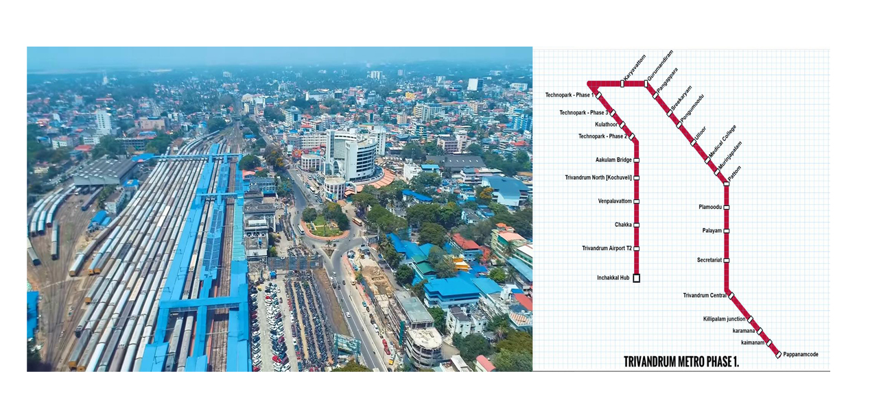 konnivartha.com; തിരുവനന്തപുരം മെട്രോ റെയിൽ പദ്ധതിയുടെ ആദ്യ ഘട്ട അലൈൻമെന്റിന് മുഖ്യമന്ത്രി പിണറായി വിജയൻ അംഗീകാരം നൽകി. ടെക്നോപാർക്കിന്റെ മൂന്ന് ഫേസുകൾ, വിമാനത്താവളം, തമ്പാനൂർ ബസ് സ്റ്റാന്റ്, റെയിൽവേ സ്റ്റേഷൻ, സെക്രട്ടറിയേറ്റ്, മെഡിക്കൽ കോളേജ്, എന്നിവ ബന്ധിപ്പിക്കുന്ന ആദ്യ ഘട്ട അലൈൻമെന്റാണ് അംഗീകരിച്ചത്. കൊച്ചി മെട്രോ റെയിൽ ലിമിറ്റഡ് (KMRL) മുഖേനയാണ് പദ്ധതി നടപ്പിലാക്കുക.