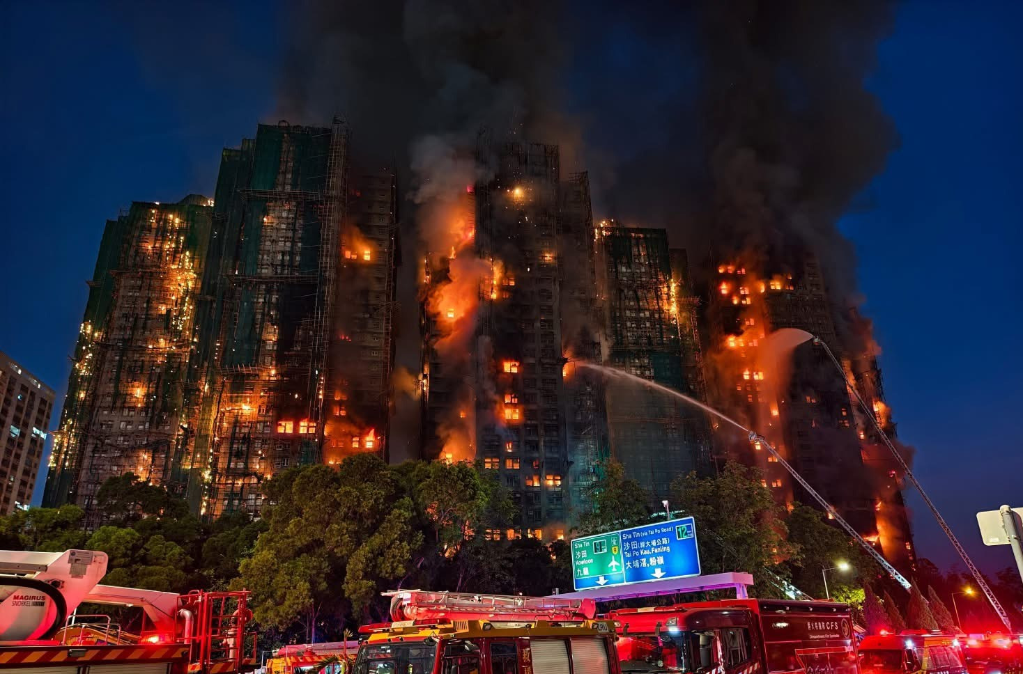 ഹോങ്കോങ്ങിലെ തായ്പോ ജില്ലയിലുള്ള പാർപ്പിട സമുച്ചയങ്ങളിലുണ്ടായ വൻ തീപിടിത്തത്തിൽ 36 പേർ മരിച്ചു.മരണ നിരക്ക് ഉയരുന്നു . 279 പേരെ കാണാതായതായി പ്രാദേശിക മാധ്യമങ്ങള്‍ റിപ്പോര്‍ട്ട്‌ ചെയ്തു . വാങ് ഫുക് കോർട്ട് ഹൗസിങ് കോംപ്ലക്സിലെ 32 നിലക്കെട്ടിടത്തിലെ ഏഴോളം ബ്ലോക്കുകളിലാണ് തീ പടര്‍ന്നത് .