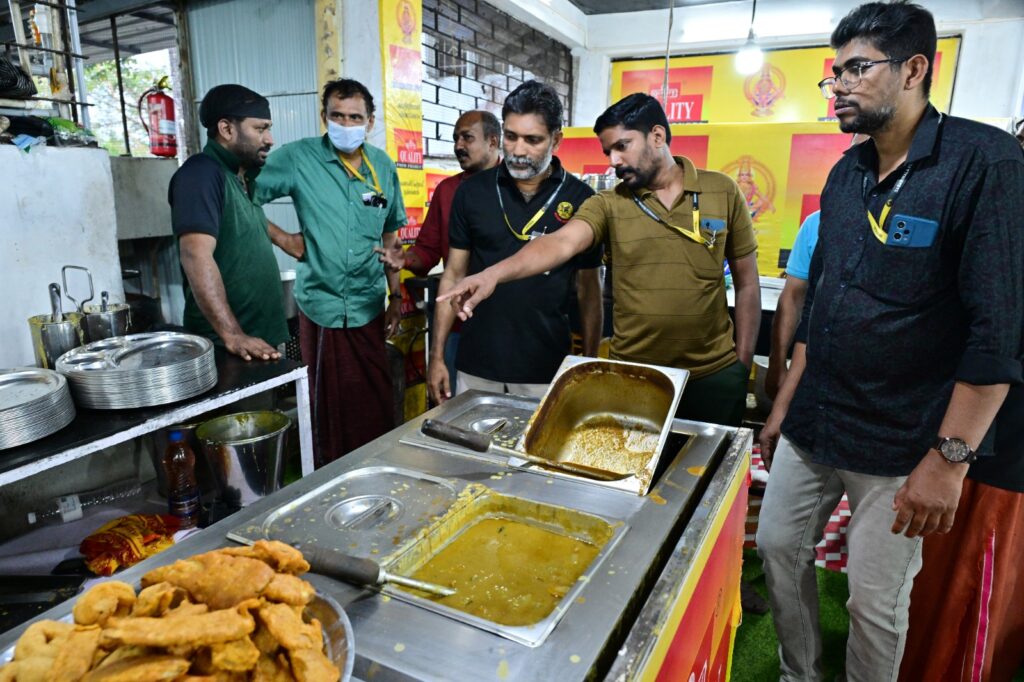 സന്നിധാനത്തെ ഹോട്ടലുകളില് സ്ക്വാഡ് പരിശോധന നടത്തി. വിലവിവരപട്ടിക പ്രദര്ശിപ്പിച്ചിട്ടുണ്ടോ എന്നു പരിശോധിച്ചു. ശുചിത്വപാലനം, തൊഴിലാളുകളുടെ ശുചിത്വം, തൊഴിലാളികളുടെ ഹെല്ത്ത് കാര്ഡ്, ഭക്ഷണ വസ്തുക്കളുടെ അളവും തൂക്കവും തുടങ്ങിയവ പരിശോധനയ്ക്ക് വിധേയമാക്കി. ഹോട്ടലുകളില് തണുത്ത വെള്ളം നല്കരുതെന്നും ചൂടുവെള്ളം മാത്രം നല്കണമെന്നും സ്ക്വാഡ് നിര്ദേശിച്ചു. ചൂടുവെള്ളത്തില് തണുത്ത വെള്ളം കലര്ത്തി നല്കരുതെന്നും നിര്ദേശം നല്കി. ഭക്ഷ്യവസ്തുക്കള് കൈകാര്യം ചെയ്യുമ്പോള് തൊഴിലാളികളുടെ കൈകള് വൃത്തിയായി സൂക്ഷിക്കണം. തലയില് നെറ്റ് ധരിക്കണം.