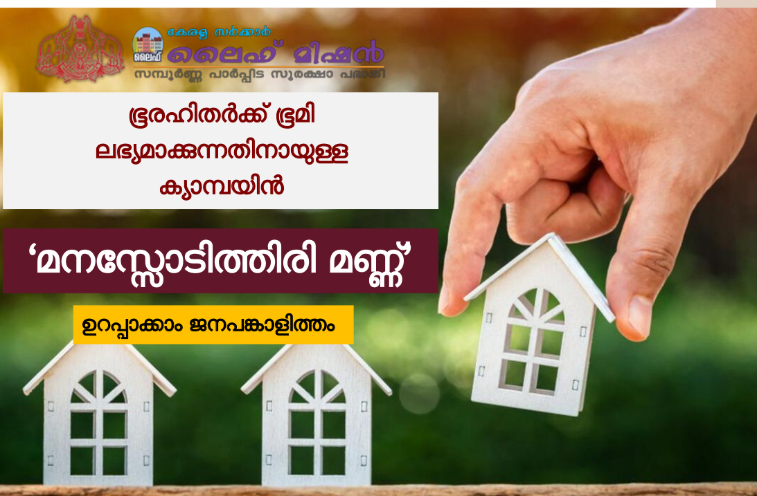 konnivartha.com : ജില്ലയിലെ ഭൂരഹിത ഭവനരഹിതരായ ലൈഫ് പദ്ധതി ഗുണഭോക്താക്കള്ക്ക് ഭവന നിര്മാണത്തിന് ആവശ്യമായ ഭൂമി ദാനമായി സ്വരൂപിക്കാന് സര്ക്കാര് ആവിഷ്കരിച്ച മനസോടിത്തിരി മണ്ണ് കാമ്പയിനില് പങ്കാളികളാകുന്നതിന് സന്നദ്ധരായവര് ജില്ലാ കളക്ടറെയോ ലൈഫ് മിഷന് കോ-ഓര്ഡിനേറ്ററെയോ ബന്ധപ്പെടണം. ഭൂ ഉടമ താമസിക്കുന്ന തദ്ദേശ സ്വയംഭരണ സ്ഥാപനത്തിലെ ഭൂരഹിതര്ക്കോ ഉടമ താത്പര്യപ്പെടുന്ന മറ്റേതെങ്കിലും തദ്ദേശ സ്വയംഭരണ സ്ഥാപനത്തിലെയോ ലൈഫ് ഗുണഭോക്തൃ ലിസ്റ്റില് ഉള്പ്പെട്ടവര്ക്ക് ഭൂമി രജിസ്റ്റര് ചെയ്തു നല്കാം. രജിസ്ട്രേഷന് ഫീസ് പൂര്ണമായി ഒഴിവാക്കി നല്കും. ഭൂമി ദാനം ചെയ്യാന് തയാറുള്ളവര്ക്ക് മാര്ച്ച് 10ന് ഉച്ചകഴിഞ്ഞ് മൂന്നിന് പത്തനംതിട്ട അബാന് ഓഡിറ്റോറിയത്തില് തദ്ദേശ സ്വയംഭരണ വകുപ്പ് മന്ത്രി എം.വി. ഗോവിന്ദന് സമ്മത പത്രം നേരിട്ട് നല്കാം. ബന്ധപ്പെടേണ്ട നമ്പര് – ജില്ലാ കളക്ടര് : 0468 2222505, ലൈഫ് മിഷന് ജില്ലാ കോ-ഓര്ഡിനേറ്റര്: 9447007364.