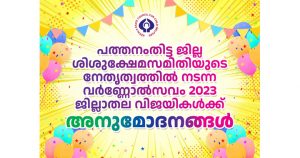 പത്തനംതിട്ട :ശിശുദിനത്തിന്റെ മുന്നോടിയായി ജില്ല ശിശുക്ഷേമ സമിതിയുടെ നേതൃത്വത്തിലുള്ള വർണ്ണോൽസവം 2023ന്റെ മുന്നോടിയായിയായുള്ള പ്രസംഗ മൽസരങ്ങൾ കാതോലിക്കേറ്റ് ഹയർ സെക്കണ്ടന്ററി സ്കൂളിൽ നഗരസഭ…