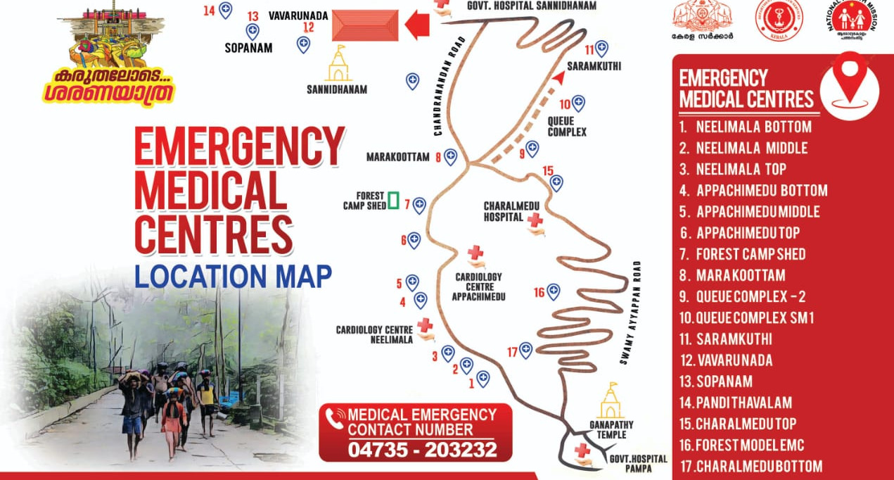 ശബരിമലയിലെ അടിയന്തര വൈദ്യസഹായ കേന്ദ്രങ്ങൾ:പ്രധാന ഫോൺ നമ്പറുകൾ konnivartha.com; ശബരിമലയിലെ അടിയന്തര വൈദ്യസഹായ കേന്ദ്രങ്ങളില് ഭക്തര്ക്ക് സേവനം തേടാവുന്നതാണ് . അടിയന്തര മെഡിക്കൽ സെന്ററുകൾ സംബന്ധിച്ചുള്ള അറിയിപ്പുകള് ആരോഗ്യ വകുപ്പ് നല്കി .ഒപ്പം ശബരിമലയിലെ പ്രധാന ഫോണ് നമ്പറുകള് പ്രസിദ്ധീകരിച്ചു :മെഡിക്കൽ എമർജൻസി കോൺടാക്റ്റ് നമ്പർ 04735-203232 അടിയന്തര മെഡിക്കൽ സെന്ററുകൾ 1. നീലിമല അടിഭാഗം 2. നീലിമല മധ്യഭാഗം 3. നീലിമല ടോപ്പ് 4. APPACHIMEDU BOTTOM 5. APPACHIMEDU MIDDLE 6. APPACHIMEDUTOP 7. ഫോറസ്റ്റ് ക്യാമ്പ് ഷെഡ് 8. മരക്കൂട്ടം 9. ക്യൂ കോംപ്ലക്സ്-2 10. ക്യൂ കോംപ്ലക്സ് SM1 11. സാരംകുത്തി 12. വാവരുനട 13. SOPANAM 14. പാണ്ടിതാവളം 15. ചരൽമേട് ടോപ്പ് 16. ഫോറസ്റ്റ് മോഡൽ ഇ.എം.സി. 17.ചാരൽമേട് ബോട്ടം sabarimala emergency phone number HEALTH…