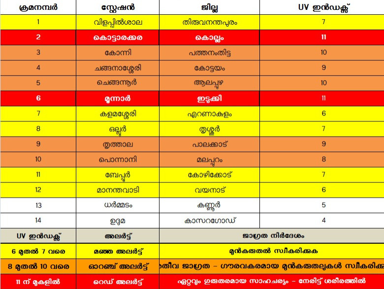 Read Moreഉയർന്ന അൾട്രാവയലറ്റ് :കൊട്ടാരക്കരയിലും മൂന്നാറും റെഡ് അലേര്ട്ട്