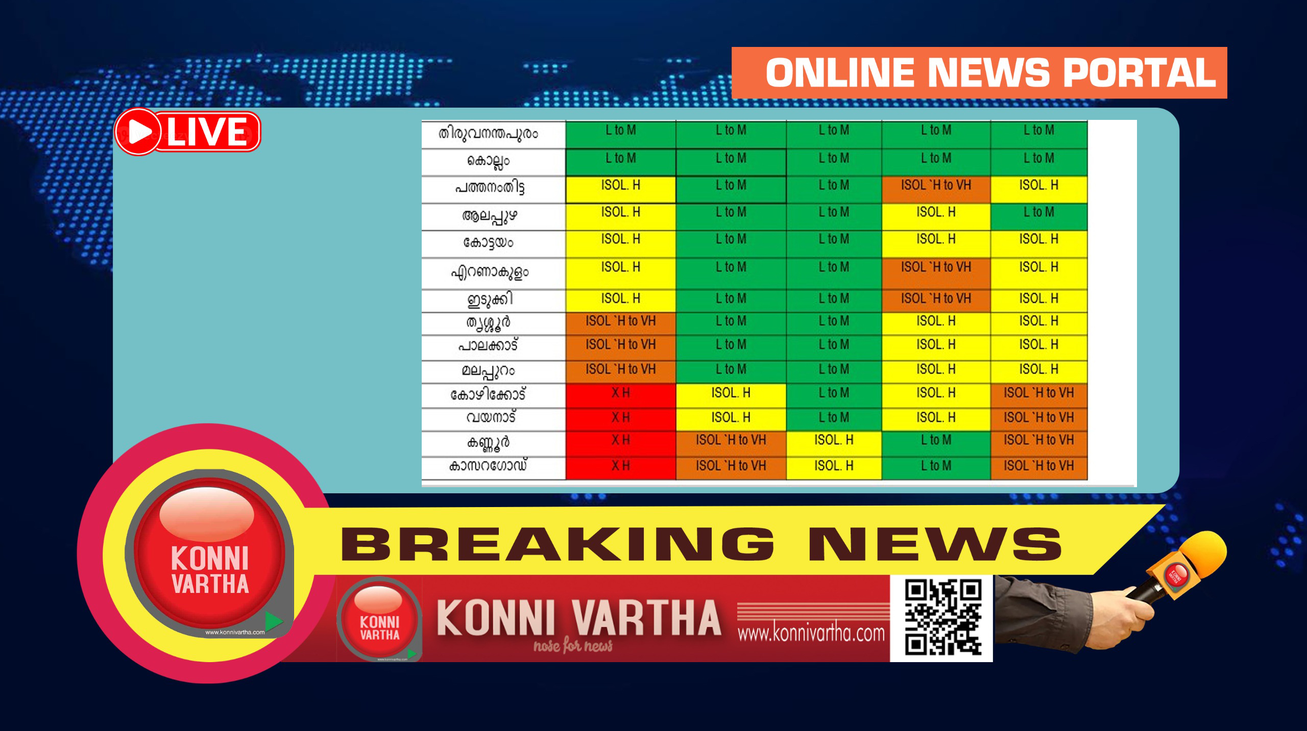 konnivartha.com: കേന്ദ്ര കാലാവസ്ഥ വകുപ്പ് കോഴിക്കോട്, വയനാട്, കണ്ണൂർ, കാസറഗോഡ് എന്നീ ജില്ലകളിൽ റെഡ് അലേർട്ട് പ്രഖ്യപിച്ചു . ഒറ്റപ്പെട്ടയിടങ്ങളിൽ അതിതീവ്രമായ മഴക്കുള്ള സാധ്യതയാണ് പ്രവചിച്ചിരിക്കുന്നത്. 24 മണിക്കൂറിൽ 204.4 mm യിൽ കൂടുതൽ മഴ ലഭിക്കുമെന്നാണ് അതിതീവ്രമായ മഴ (Extremely Heavy Rainfall) എന്നത് കൊണ്ട് കാലാവസ്ഥ വകുപ്പ് അർത്ഥമാക്കുന്നത്. ആയതിനാൽ ഇന്ന് (20.05.2025) വെകുന്നേരം 5 മണിക്ക് മേല്പറഞ്ഞ ജില്ലകളിൽ മുന്നറിയിപ്പിന്റെ ഭാഗമായി ജില്ലയിലെ കവചം മുന്നറിയിപ്പ് സംവിധാനത്തിന്റെ ഭാഗമായുള്ള സൈറണുകൾ മുഴങ്ങുന്നതായിരിക്കും. ഓറഞ്ച് അലർട്ട് 20/05/2025: തൃശൂർ, പാലക്കാട്, മലപ്പുറം 21/05/2025: കണ്ണൂർ, കാസറഗോഡ് 23/05/2025: പത്തനംതിട്ട, എറണാകുളം, ഇടുക്കി 24/05/2025: കോഴിക്കോട്, വയനാട്, കണ്ണൂർ, കാസറഗോഡ് എന്നീ ജില്ലകളിൽ കേന്ദ്ര കാലാവസ്ഥ വകുപ്പ് ഓറഞ്ച് അലർട്ട് പ്രഖ്യാപിച്ചിരിക്കുന്നു. ഒറ്റപ്പെട്ടയിടങ്ങളിൽ അതിശക്തമായ മഴയ്ക്കുള്ള സാധ്യതയാണ് പ്രവചിച്ചിരിക്കുന്നത്. 24 മണിക്കൂറിൽ 115.6…