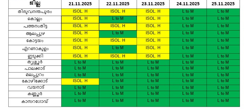 Read Moreകാലാവസ്ഥ മുന്നറിയിപ്പുകള് ( 22/11/2025 )