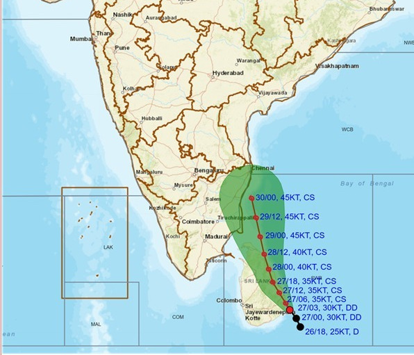 വടക്കൻ തമിഴ്നാട് തീരം, പുതുച്ചേരി തീരങ്ങൾ: മണിക്കൂറിൽ 70 മുതൽ 80 കിലോമീറ്റർ വരെയും ചില അവസരങ്ങളിൽ 90 കിലോമീറ്റർ വരെയും വേഗതയിൽ അതിശക്തമായ കാറ്റ് നിലനിൽക്കുന്നു. ഡിസംബർ 01 രാവിലെയോടെ മണിക്കൂറിൽ 45 മുതൽ 55 കിലോമീറ്റർ വരെയും ചില അവസരങ്ങളിൽ 65 കിലോമീറ്റർ വരെയും ആകാൻ സാധ്യത. നിലവിൽ കടൽ പ്രക്ഷുബ്ധമായി തുടരുന്നു. ഡിസംബർ 1 വരെ പ്രക്ഷുബ്ധമായി തുടരാൻ സാധ്യത. തെക്കൻ തമിഴ്നാട് തീരം, ഗൾഫ് ഓഫ് മാന്നാർ, കന്യാകുമാരി പ്രദേശം, തെക്കു പടിഞ്ഞാറൻ ബംഗാൾ ഉൾക്കടൽ ഡിസംബർ 01 രാവിലെയോടെ മണിക്കൂറിൽ 45 മുതൽ 55 കിലോമീറ്റർ വരെയും ചില അവസരങ്ങളിൽ 65 കിലോമീറ്റർ വരെയും ആകാൻ സാധ്യത. നിലവിൽ കടൽ പ്രക്ഷുബ്ധമായി തുടരുന്നു. ഡിസംബർ 1 വരെ പ്രക്ഷുബ്ധമായി തുടരാൻ സാധ്യത. മധ്യ പടിഞ്ഞാറൻ ബംഗാൾ ഉൾക്കടൽ, തെക്കൻ…