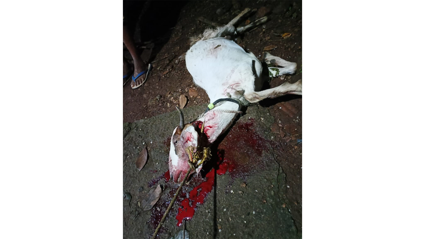 konnivartha.com: കോന്നി പഞ്ചായത്തിലെ ആറാം വാര്‍ഡില്‍ വെളുപ്പിനെ കടുവ ഇറങ്ങി ആടിനെ കൊന്നു . വീട്ടുകാര്‍ കടുവയെ കണ്ടു .   ആവോലിക്കുഴി വരിക്കാഞ്ഞിലി കിടങ്ങില്‍ വീട്ടില്‍ അനിലിന്‍റെ ആടിനെയാണ് കൊന്നത് .രണ്ട് ആടുകളെ കാണാനും ഇല്ല . ഇന്ന് വെളുപ്പിനെ ആണ് കടുവ ഇറങ്ങിയത്‌ എന്ന് വാര്‍ഡ്‌ മെമ്പര്‍ രഞ്ജു പറഞ്ഞു .