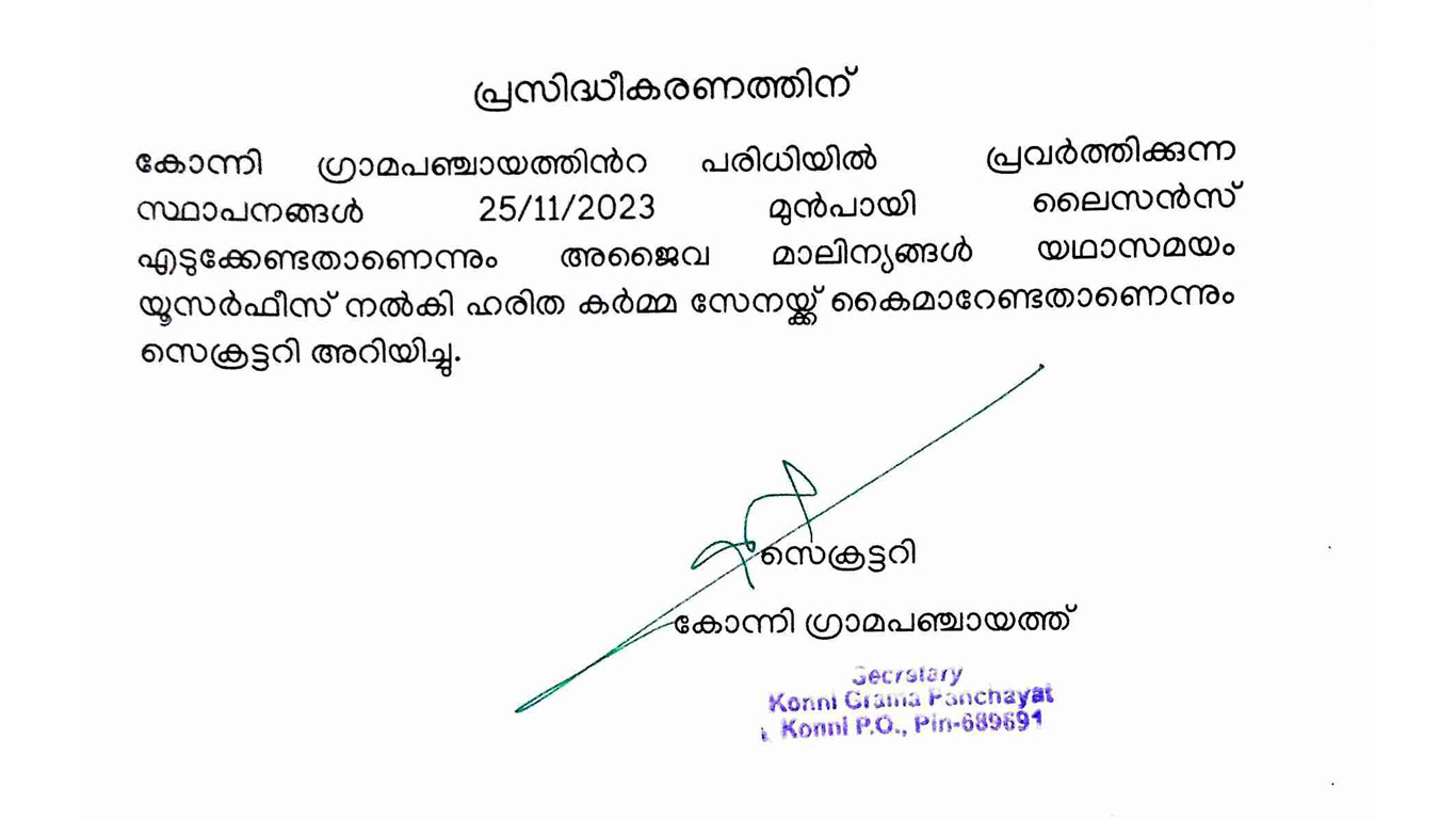 Read Moreകോന്നി പഞ്ചായത്ത് അറിയിപ്പ് 14/11/2023)