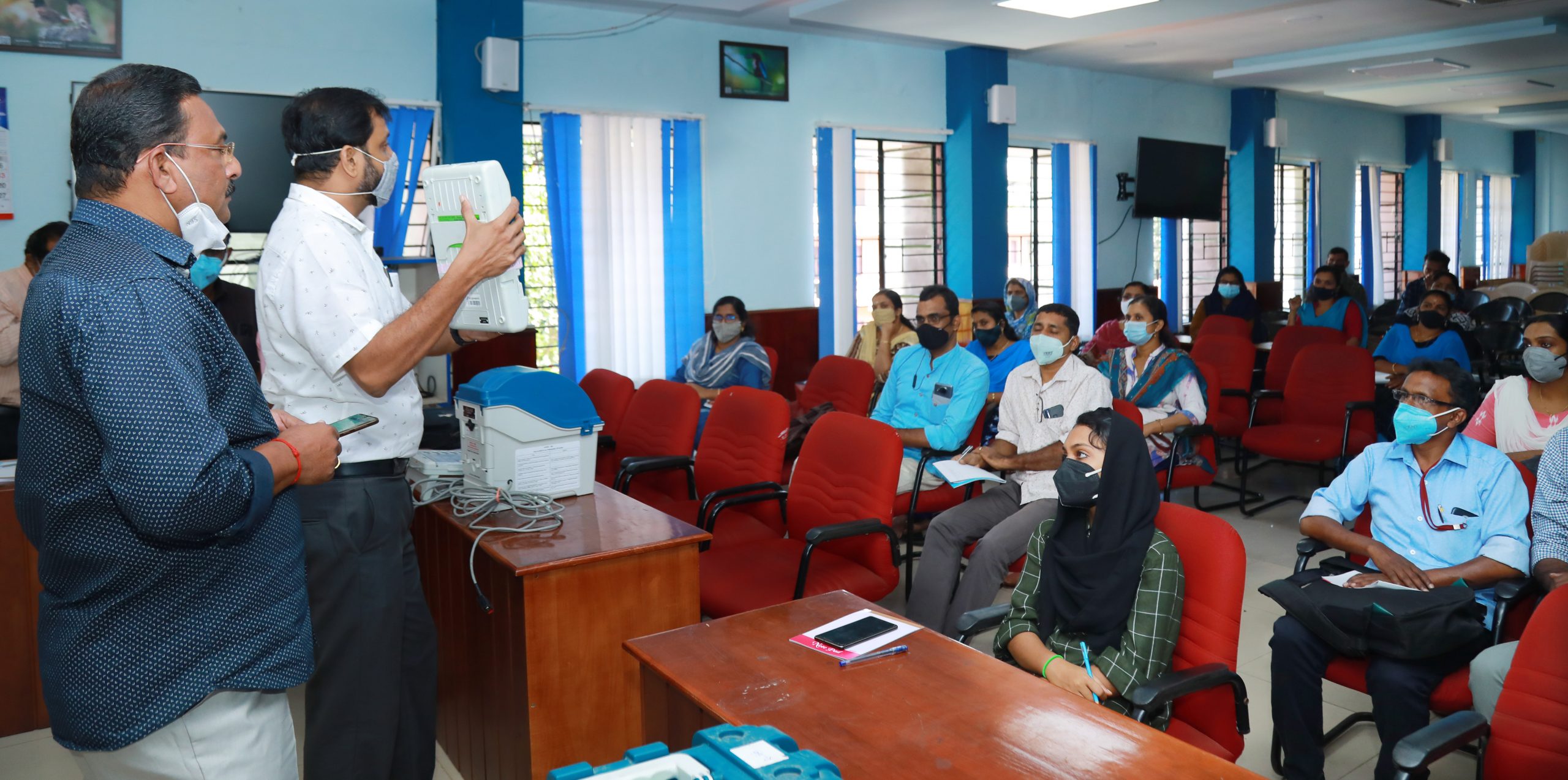 കോന്നി വാര്‍ത്ത : നിയമസഭ തെരഞ്ഞെടുപ്പിന് മുന്നോടിയായി ജില്ലാതല മാസ്റ്റര്‍ ട്രെയിനികള്‍ക്ക് കളക്ടറേറ്റില്‍ പരിശീലനം നല്‍കി. ജില്ലാ തെരഞ്ഞെടുപ്പ് ഓഫീസറും ജില്ലാ കളക്ടറുമായ ഡോ. നരസിംഹുഗാരി തേജ് ലോഹിത് റെഡ്ഡിയുടെ നേതൃത്വത്തിലായിരുന്നു പരിശീലനം. സ്‌പെഷ്യല്‍ പോസ്റ്റല്‍ ബാലറ്റ് നല്‍കേണ്ടവരെ സംബന്ധിച്ചും ഓക്‌സിലറി ബൂത്തുകളെ സംബന്ധിച്ചും ജില്ലാ കളക്ടര്‍ വിശദീകരിച്ചു. സംസ്ഥാന തലത്തില്‍ പരിശീലനം ലഭിച്ച അഞ്ച് ഡെപ്യൂട്ടി തഹസില്‍ദാര്‍മാരാണ് ജില്ലാതല മാസ്റ്റര്‍ ട്രെയിനികള്‍ക്ക് ക്ലാസ് എടുത്തത്. ബാലറ്റ് യൂണിറ്റ്, വിവിപാറ്റ് മെഷീന്‍, കണ്‍ട്രോള്‍ യൂണിറ്റ് എന്നിവ ഘടിപ്പിക്കുന്നത് സംബന്ധിച്ചും ഇത്തവണ ഉപയോഗിക്കുന്ന വോട്ടിംഗ് മെഷീന്റെ സവിശേഷതകളെ സംബന്ധിച്ചും ക്ലാസില്‍ വിവരിച്ചു. വിവിപാറ്റ് എം ത്രീ മെഷീനുകളാണ് ഇത്തവണ ഉപയോഗിക്കുന്നത്. ബെല്‍ എന്ന കമ്പനിയാണ് ഈ മെഷീന്‍ നിര്‍മിച്ചിരിക്കുന്നത്. മുന്‍പ് ഉപയോഗിച്ചിരുന്ന മെഷീനുകളില്‍ നിന്നും മെച്ചപ്പെട്ട രീതിയിലാണ് ഇത് ക്രമീകരിച്ചിരിക്കുന്നത്. മെഷീനുകള്‍ പരസ്പരം ഘടിപ്പിച്ചു കഴിഞ്ഞാല്‍ കണ്‍ട്രോള്‍…