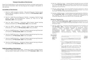 നവംബര് 18, 19 തീയതികളില് സംസ്ഥാനത്ത് റെയിൽ ഗതാഗതത്തിൽ നിയന്ത്രണം