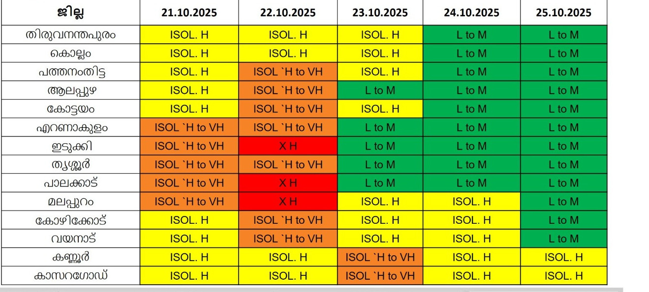 konnivartha.com: കേന്ദ്രകാലാവസ്ഥാ വകുപ്പ് റെഡ് അലര്ട്ട് പ്രഖ്യാപിച്ച സാഹചര്യത്തില് ഇടുക്കിയിലെ വിദ്യാഭ്യാസ സ്ഥാപനങ്ങള്ക്ക് ജില്ലാ കലക്ടര് നാളെ ( 22-10-2025)അവധി പ്രഖ്യാപിച്ചു. പ്രൊഫഷണല് കോളേജുകള് ഉള്പ്പെടെയുള്ള എല്ലാ വിദ്യാഭ്യാസ സ്ഥാപനങ്ങള്ക്കും നാളെ അവധി ആയിരിക്കും.ജില്ലയിലെ പ്രഫഷണൽ കോളേജുകൾ, അങ്കണവാടികൾ, നഴ്സറികൾ, കേന്ദ്രീയ വിദ്യാലയങ്ങൾ, സി ബി എസ് ഇ, ഐ സി എസ് ഇ സ്കൂളുകൾ, മദ്രസകൾ ഉൾപ്പെടെയുള്ള എല്ലാ വിദ്യാഭ്യാസ സ്ഥാപനങ്ങൾക്കും ബാധകമാണ്. വിദ്യാര്ഥികള് താമസിച്ച് പഠിക്കുന്ന റസിഡന്ഷ്യല് സ്ഥാപനങ്ങള്ക്ക് അവധി ബാധകമല്ല. മുൻകുട്ടി നിശ്ചയിച്ച പരീക്ഷകൾക്കും. ഇൻ്റർവ്യൂകൾക്കും മാറ്റമുണ്ടാകില്ല