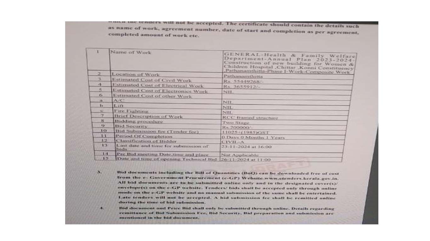 konnivartha.com: ചിറ്റാർ സ്പെഷ്യലിറ്റി ജില്ലാ ആശുപത്രി നിർമ്മാണ പ്രവർത്തി പൊതുമരാമത്ത് വകുപ്പ് ടെൻഡർ ചെയ്തതായി അഡ്വ. കെ യു ജനീഷ് കുമാർ എം എൽ എ അറിയിച്ചു. നവംബർ 26നാണ് ടെൻഡർ ഓപ്പണിങ് ഡേറ്റ്.പൊതുമരാമത്ത് കെട്ടിട വിഭാഗം തയ്യാറാക്കിയ എസ്റ്റിമേറ്റിൽ 32 കോടി രൂപ ചിലവിൽ അത്യാധുനിക സംവിധാനങ്ങൾ ഉള്ള സ്ത്രീകളുടെയും കുട്ടികളുടെയും ജില്ലാ സ്പെഷ്യൽ ആശുപത്രിയാണ് ചിറ്റാറിൽ നിർമ്മിക്കുന്നത്. അഞ്ചു നിലകളയായി ക്രമീകരിച്ചിരിക്കുന്ന ആശുപത്രി കെട്ടിടം 3 ഘട്ടങ്ങളിലായിട്ടാണ് പ്രവർത്തി നടപ്പിലാക്കുന്നത്.ആശുപത്രിയുടെ ആദ്യഘട്ട നിർമ്മാണത്തിനായി 7 കോടിരൂപയുടെ സാമ്പത്തിക അനുമതിയാണ് ലഭ്യമായത്.ആദ്യഘട്ടത്തിൽ ഒരു ഫ്ലോറിൽ പതിനൊന്നായിരം ചതുരശ്ര അടി വിസ്തീർണ്ണം ഉള്ള രണ്ടു നിലകളാണ് നിർമ്മിക്കുക. ഗ്രൗണ്ട് ഫ്ലോറിൽകാഷ്വാലിറ്റി, ഹെൽപ്പ് ഡെസ്ക്, ഗൈനക്ക് ഓ പി റൂമുകൾ, പീഡിയാട്രിക് ഒ. പി റൂമുകൾ ,ഡോക്ടേഴ്സ് റൂമുകൾ, നഴ്സസ് റെസ്റ്റിംഗ് റൂമുകൾ, ഫീഡിങ് റൂം, അനസ്തേഷ്യ…