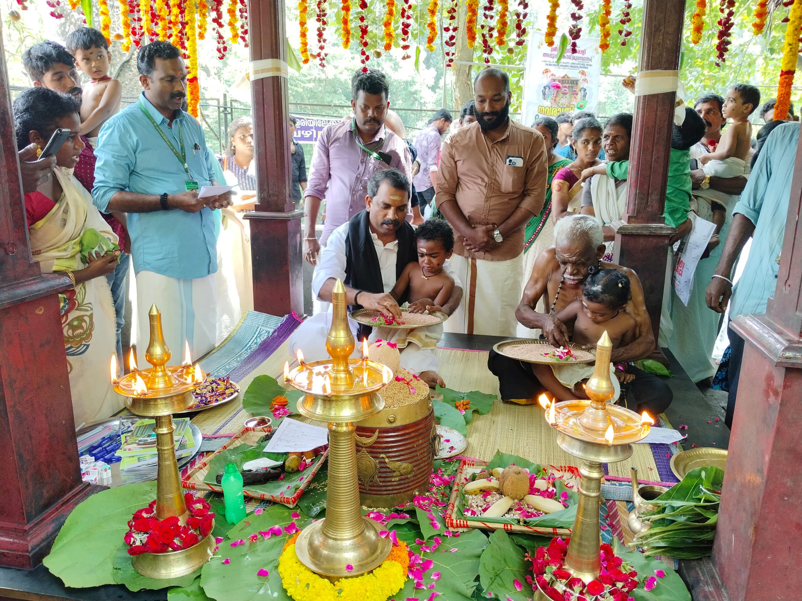 കോന്നി ശ്രീ കല്ലേലി ഊരാളി അപ്പൂപ്പൻ കാവ് തിരു സന്നിധിയിൽ വിജയ ദശമിയോട് അനുബന്ധിച്ച് വിദ്യാരംഭം ചടങ്ങുകൾ സമർപ്പിച്ചു. തുടർന്ന് നവ ഭാവങ്ങളെ ഉണർത്തി വിദ്യാദേവി പൂജ,പരാശക്തി അമ്മ പൂജ, വന ദുർഗ്ഗ അമ്മ പൂജ എന്നിവയും സമർപ്പിച്ചു