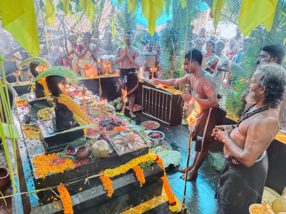 konnivartha.com; കോന്നി : ശബരിമലയും അച്ചന്കോവിലുമടക്കമുള്ള തൊള്ളായിരത്തി തൊണ്ണൂറ്റി ഒമ്പത് മലകള്ക്ക് ഉടയവനായ ശ്രീ കല്ലേലി ഊരാളി അപ്പൂപ്പന് എല്ലാ മലയാള മാസം ഒന്നാം തീയതി സമര്പ്പിക്കുന്ന ഒമ്പത് കൂട്ടം പ്രകൃതി വിഭവം കൊണ്ടുള്ള നവാഭിഷേക പൂജ കോന്നി കല്ലേലി ഊരാളി അപ്പൂപ്പന് കാവില് പുലര്കാലത്ത് സമര്പ്പിച്ചു . തുടര്ന്ന് നിലവറ തുറന്ന് സ്വര്ണ്ണ മലക്കൊടിയ്ക്കും മല വില്ലിനും ഊട്ടും പൂജകളും അര്പ്പിച്ചു . മലകളുടെ അനുഗ്രഹത്തിന് വേണ്ടിദക്ഷിണ സമര്പ്പിച്ച് വസ്ത്രവും അടുക്കുകളും വെച്ച് തെണ്ടും തെരളിയും വറപൊടിയും മുളയരിയും കാര്ഷിക വിളകളും ചുട്ടും വറുത്തും പൊടിച്ചും പുഴുങ്ങിയും 41 തൃപ്പടികളില് സമര്പ്പിച്ചു പടി പൂജ നടത്തി . പ്രകൃതി വിഭവം കൊണ്ട് നവാഭിഷേക പൂജ സമര്പ്പിക്കുന്ന ഏക കാനന വിശ്വാസ കേന്ദ്രമാണ് കോന്നി കല്ലേലി ഊരാളി അപ്പൂപ്പന് കാവ് . കൌള ശാസ്ത്ര വിധി…