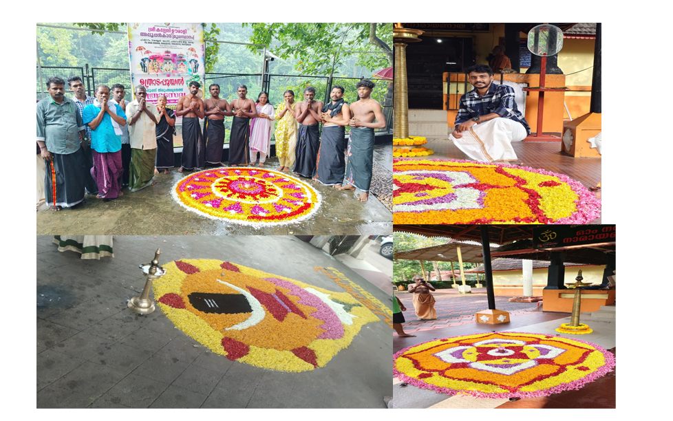 konnivartha.com: കോന്നിയിലെ വിവിധ ക്ഷേത്രങ്ങളില് തിരുവോണ പൂക്കളം ഒരുക്കി . കോന്നി കല്ലേലി ഊരാളി അപ്പൂപ്പന് കാവ് ,കോന്നി മങ്ങാരം ഇളങ്ങവട്ടം ശ്രീകൃഷ്ണ സ്വാമി ക്ഷേത്രം , മുരിങ്ങമംഗലം മഹാദേവര് ക്ഷേത്രം എന്നിവിടെ നിന്നുള്ള പൂക്കളം ഭക്തര് “കോന്നി വാര്തയിലേക്ക് “അയച്ചു . കോന്നിയില് ഓണം ആഘോഷിച്ചു . കരിയാട്ടം വേദിയില് നിറഞ്ഞ സദസ്സോടെ കോന്നിയിലെ മഹോത്സവം നടന്നു വരുന്നു .